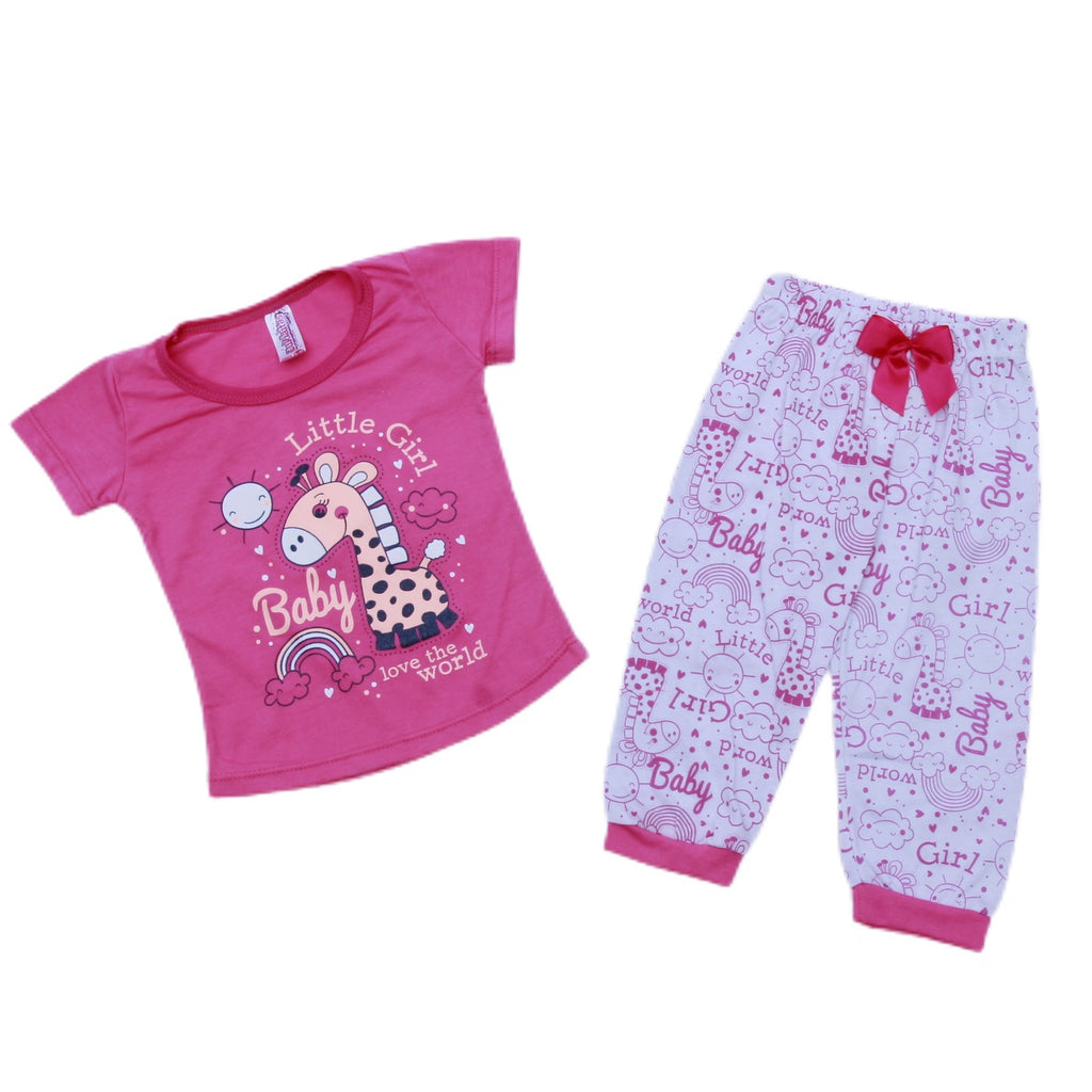 Pijama conjunto con estampado, elaborado en tela suave. Camiseta manga corta y cuello redondo, sudadera estampada con cintura ajustable.