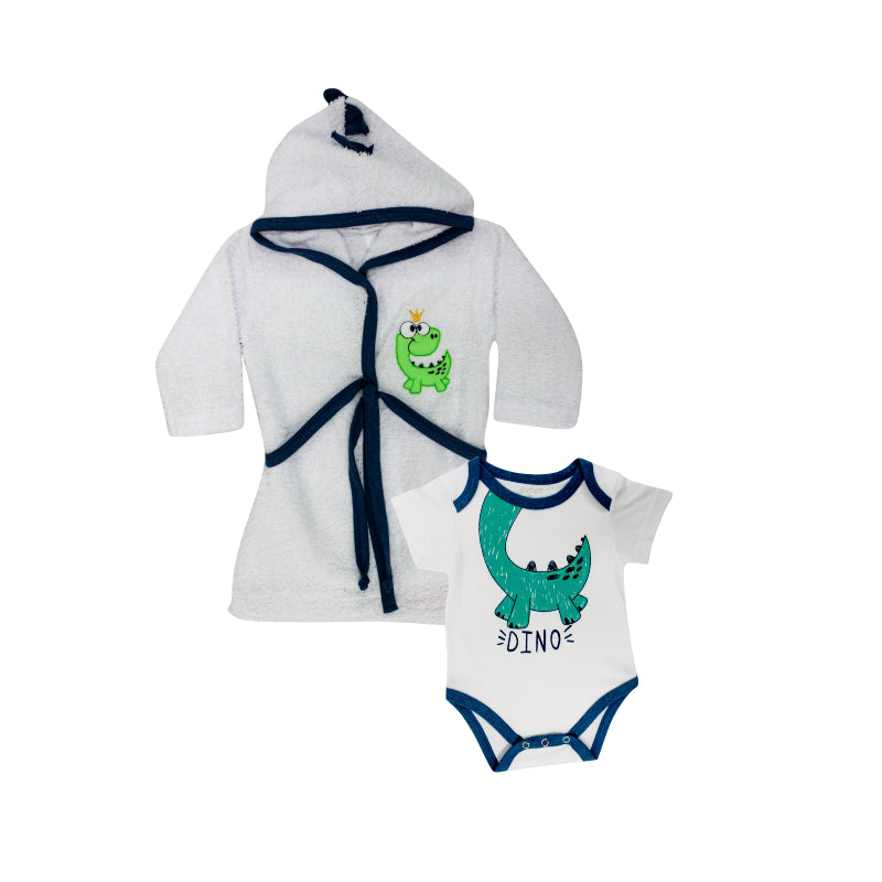 Salida de baño en tela toalla, con  bordado y capucha, que ayudarán a mantener a tu pequeño abrigado y seco después de la hora del baño. Body elaborado en algodón con sesgo de colores y estampado.