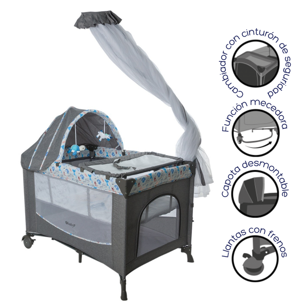 CUNA CORRAL DE LUJO AURA EB754 GRIS EBABYCUNA CORRAL DE LUJO AURA EB754 GRIS EBABY