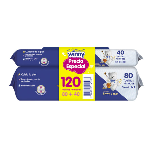TOALLITAS WINNY AVENA Y MIEL PAQX40 (11657019338)