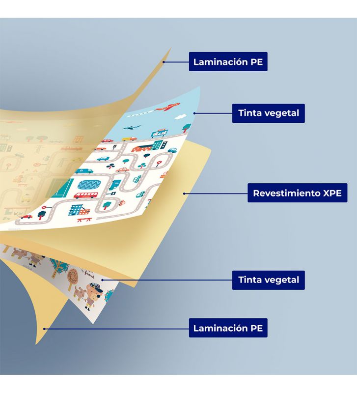 100% LIBRE DE TÓXICOS: Todos los materiales de nuestra alfombra de juegos son respetuosos con el medio ambiente y están libres de químicos como el látex, plomo, BPA, ftalatos y formamida. Las ilustraciones están impresas con tinta de aceite vegetal.