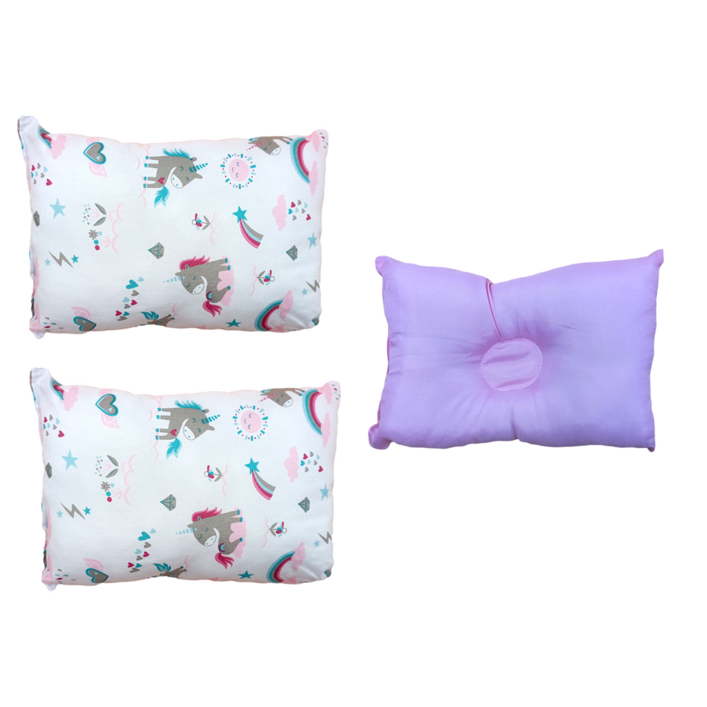 Almohadas antialergicas para bebé en tela franela estampada, rellena con fibra siliconada.