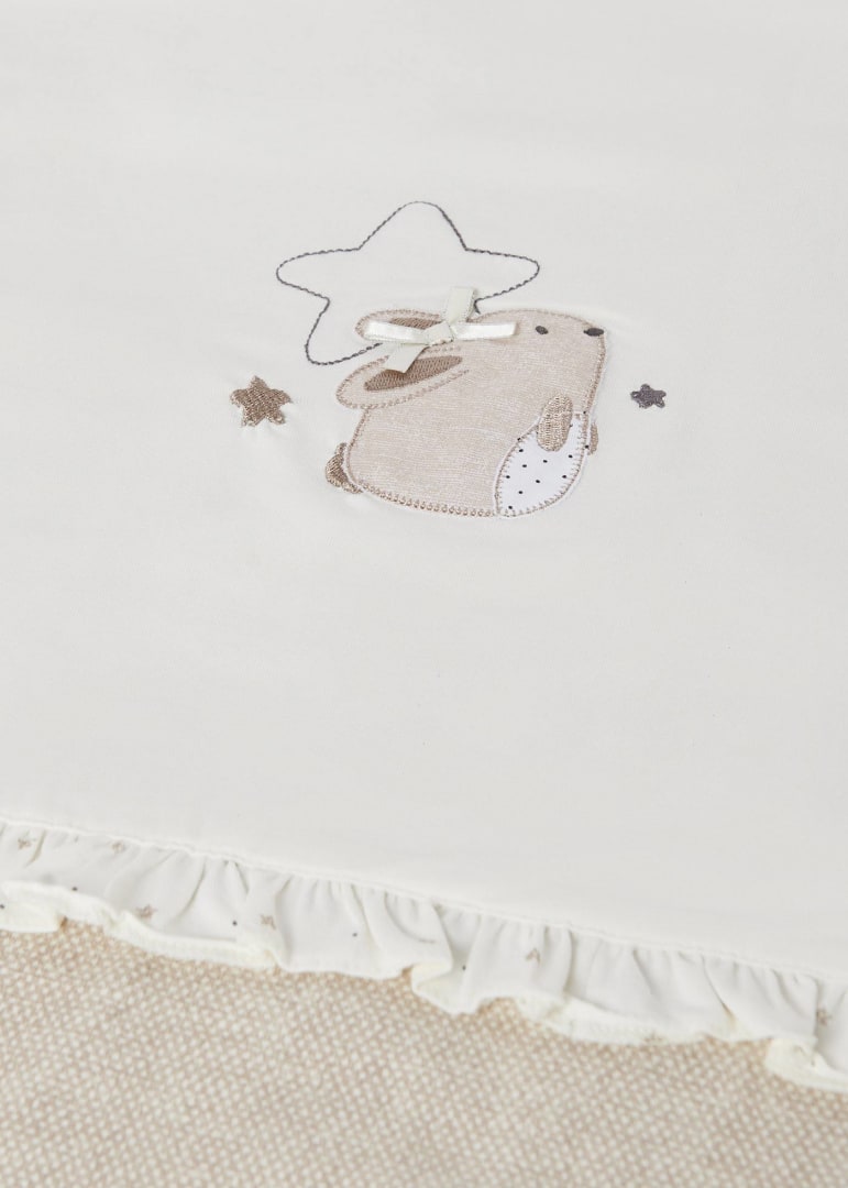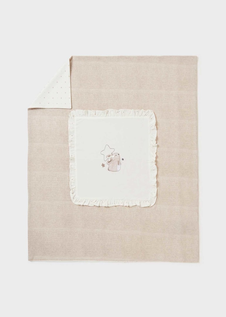 Cálida manta infantil de gran suavidad, con la que tu bebé se sentirá abrigado y protegido en sus momentos de descanso. Tejido 100% algodón. Elementos de adorno: aplique decorativo.