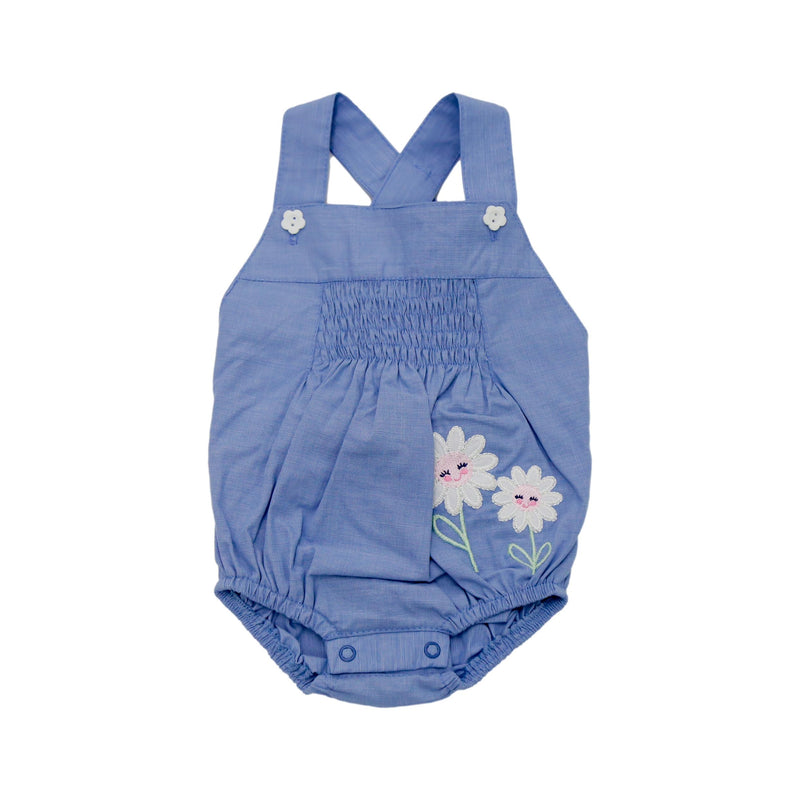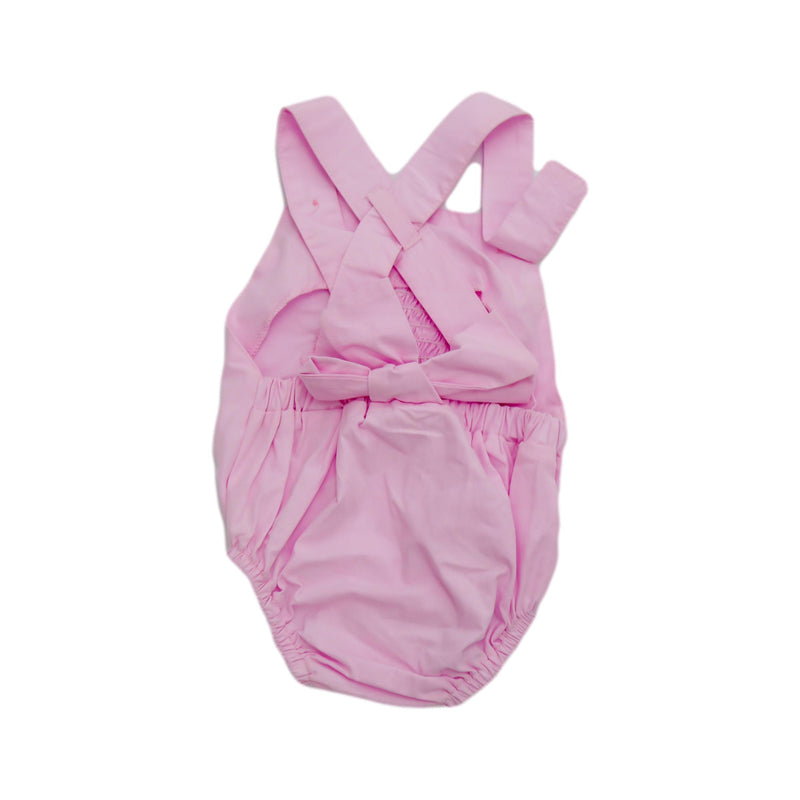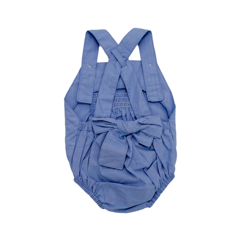 Asoleador estilo tipo body en la parte inferior para facilitar el cambio de prenda, tirantes cruzados en la espalda. Elaborado en algodón. Contiene detalle decorativo bordado.