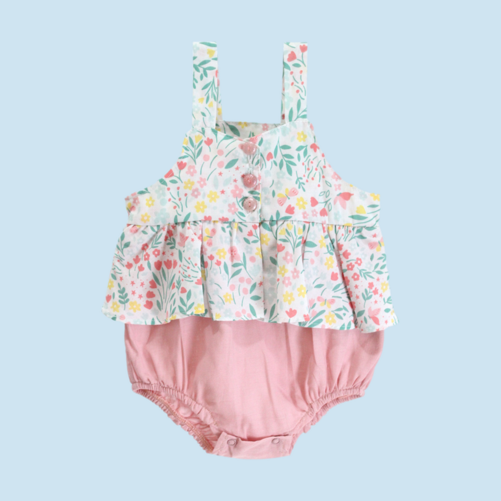 ¡Prepara a tu bebé para el verano con este hermoso asoleador de Creciendo Baby! Esta linda prenda acompañará a tu pequeña en todas sus aventuras, ¡con su tela suave, y diseño estampado de flores! El fresco y elegante diseño harán que se vea tan linda y cómoda. ¡Utilízalo para un día de playa, un día de campo, o para pasar un tiempo en la casa! ¡No te arrepentirás!