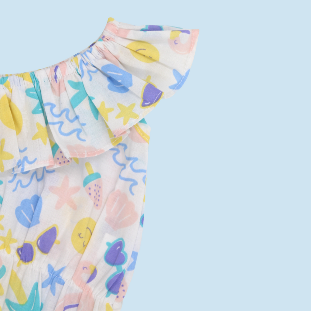 ¡Prepara a tu bebé para el verano con este hermoso asoleador de Creciendo Baby! Esta linda prenda acompañará a tu pequeña en todas sus aventuras, ¡con su tela suave, y diseño estampado de flores! El fresco y elegante diseño harán que se vea tan linda y cómoda. ¡Utilízalo para un día de playa, un día de campo, o para pasar un tiempo en la casa! ¡No te arrepentirás!