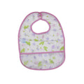 Babero plástico con broche y bolsillo, cubre los hombros y el frente de la ropa, bolsillo para recoger la comida que el bebé deja caer. Impermeable y fácil de limpia. Para bebé de 0 a 24 meses.
