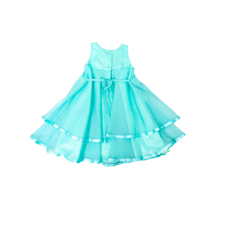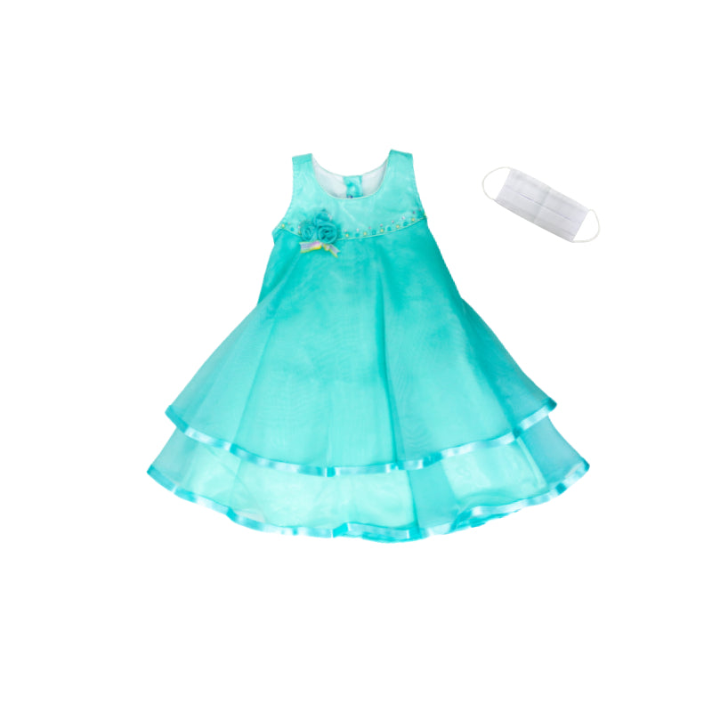 Bata para niña unicolor con adorno decorativo en el frente. Contiene tapaboca blanco.