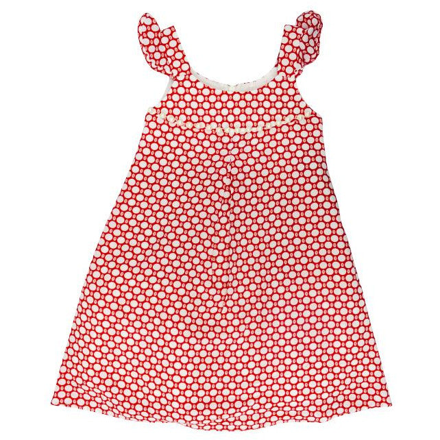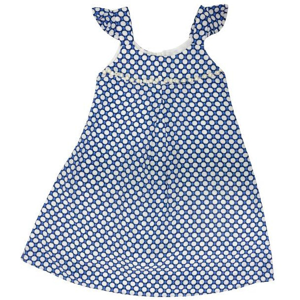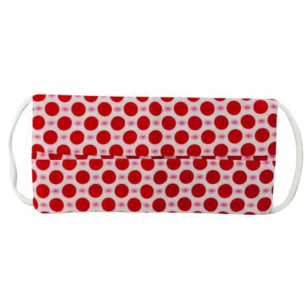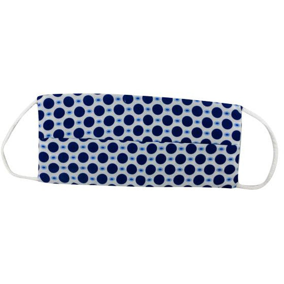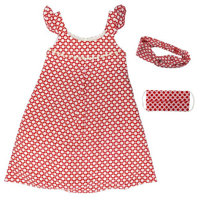 Bata para niña con estampados de bolitas y adorno decorativo. Contiene tapaboca estampado y cintillo.