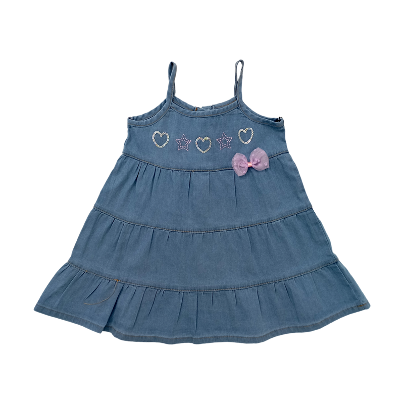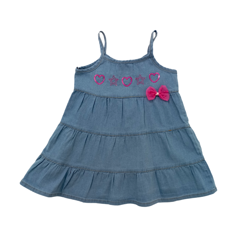 Vestido estilo bata para bebé, con detalles decorativos en la parte superior. ¡Tela fresca y diseño en tirantes para mayor coodidad de u bebé!
