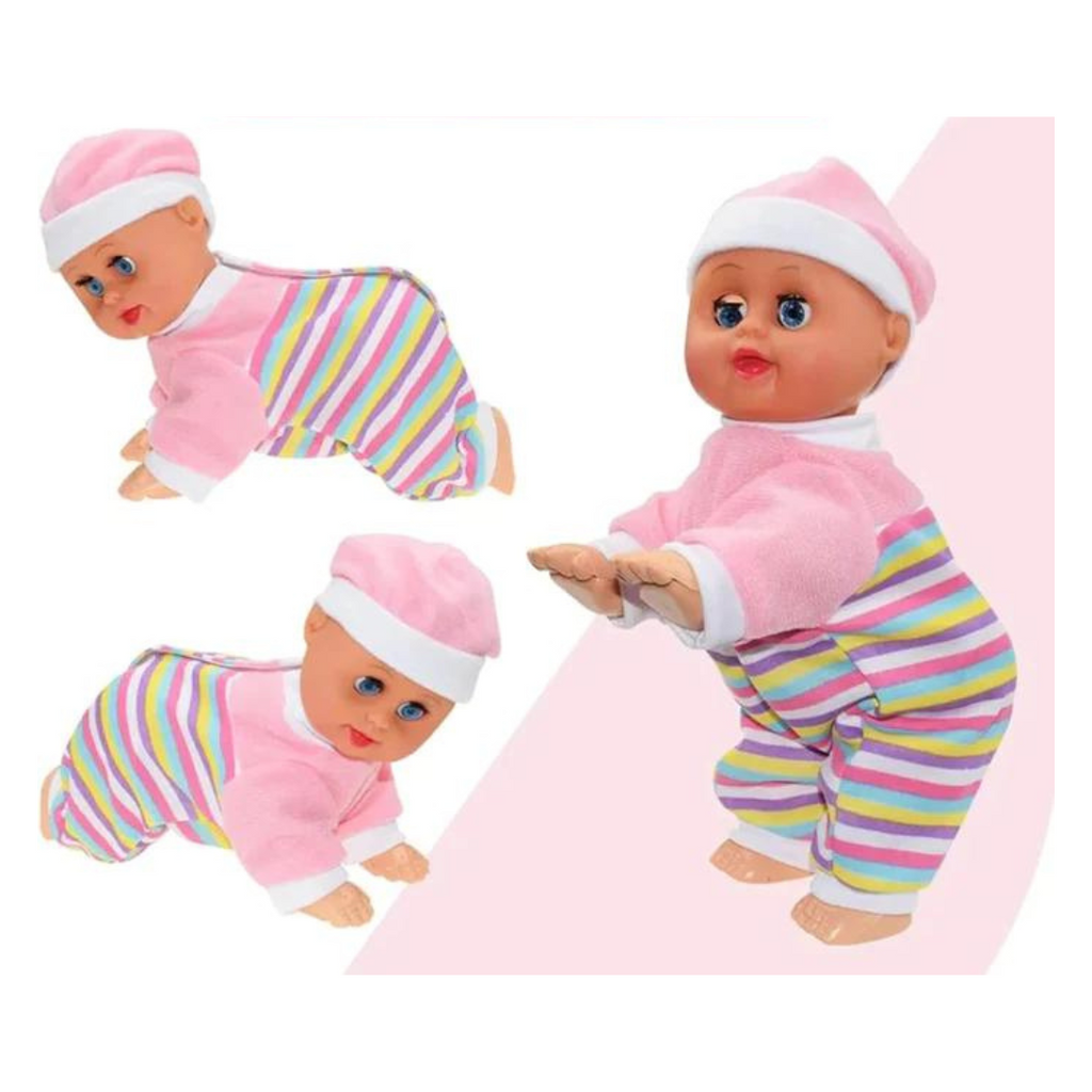 Escucha al bebé gateador hacer lindos sonidos y tiernos movimientos