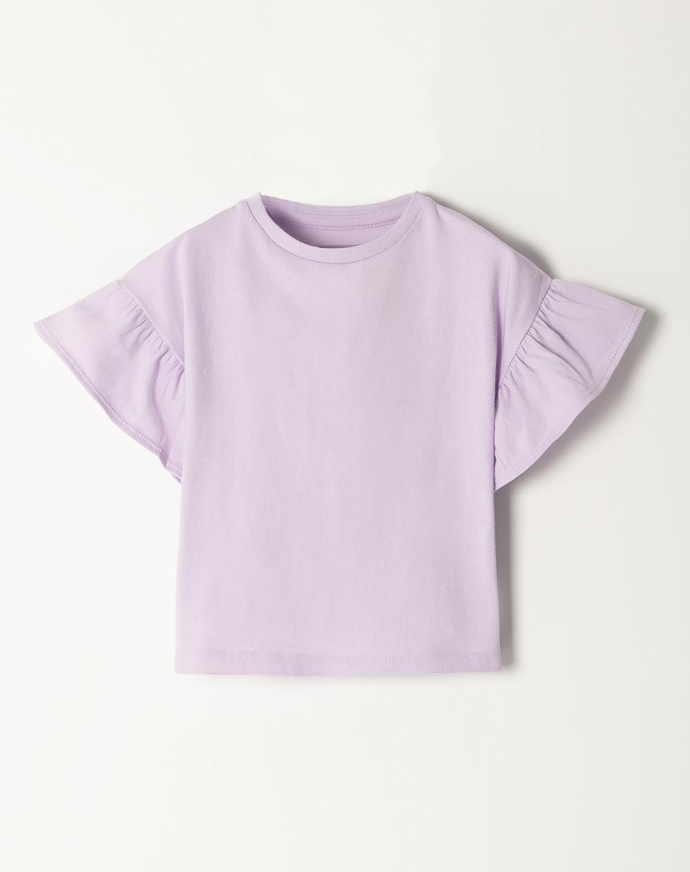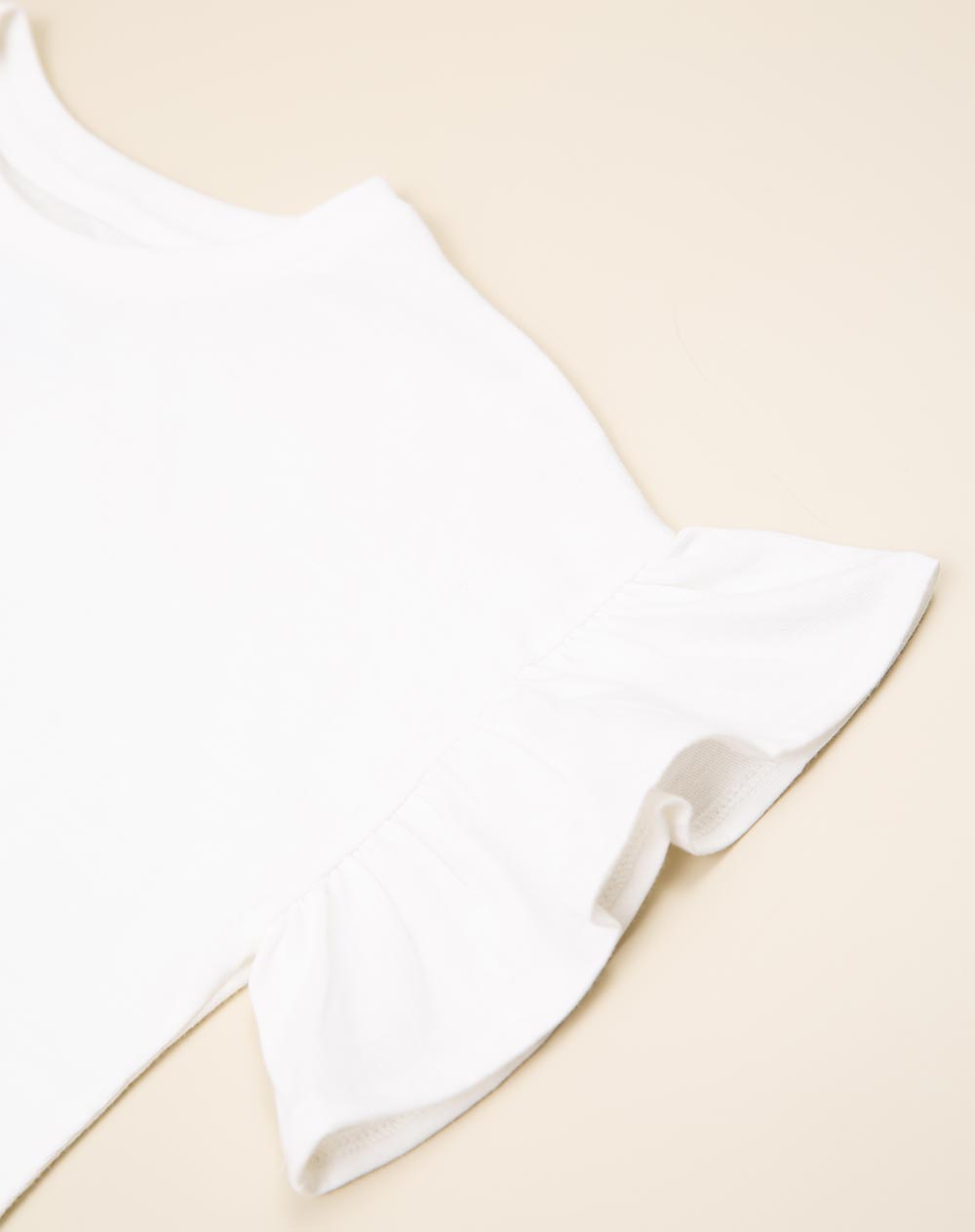 Camiseta cuello redondo, manga corta con bolero. Elaborado en algodón orgánico libre de pesticidas y fertilizantes. La tela es suave, transpirable e hipoalergénica. Proporciona frescura ideal para la piel del bebé.
