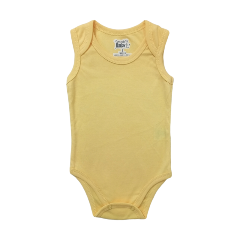 Body con cuello redondo que le darán comodidad a tu bebé, sin manga para mayor frescura. Prácticos broches en la entrepierna para facilitar la hora de colocarlo o del cambio del pañal.