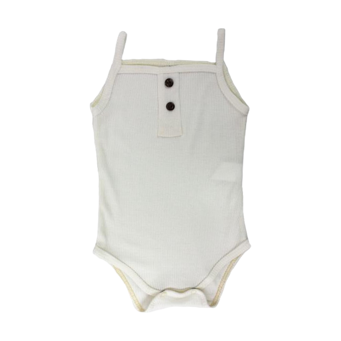 Body unicolor con tirantes, elaborado en tela suave, con broches en la parte inferior que facilitan a la hora del cambio de pañal. Prenda suave y fresca. Contiene pantys con boleros y ajuste de lazo.