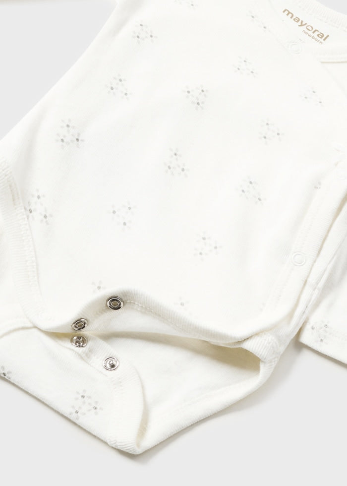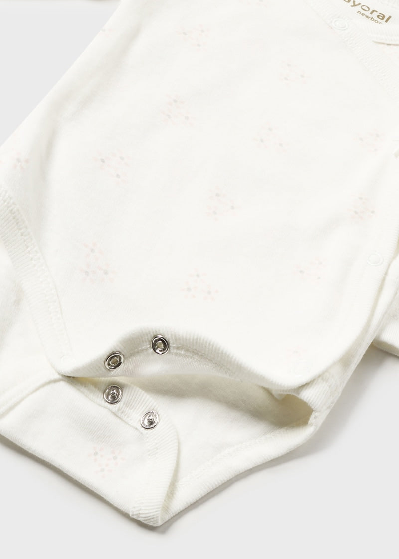 Hermoso set de bodys para bebé, perfecto para llevar a otro nivel a tu bebé elegante y fresco. Cierre con botones a presión en la entrepierna para facilitar la puesta de la prenda.