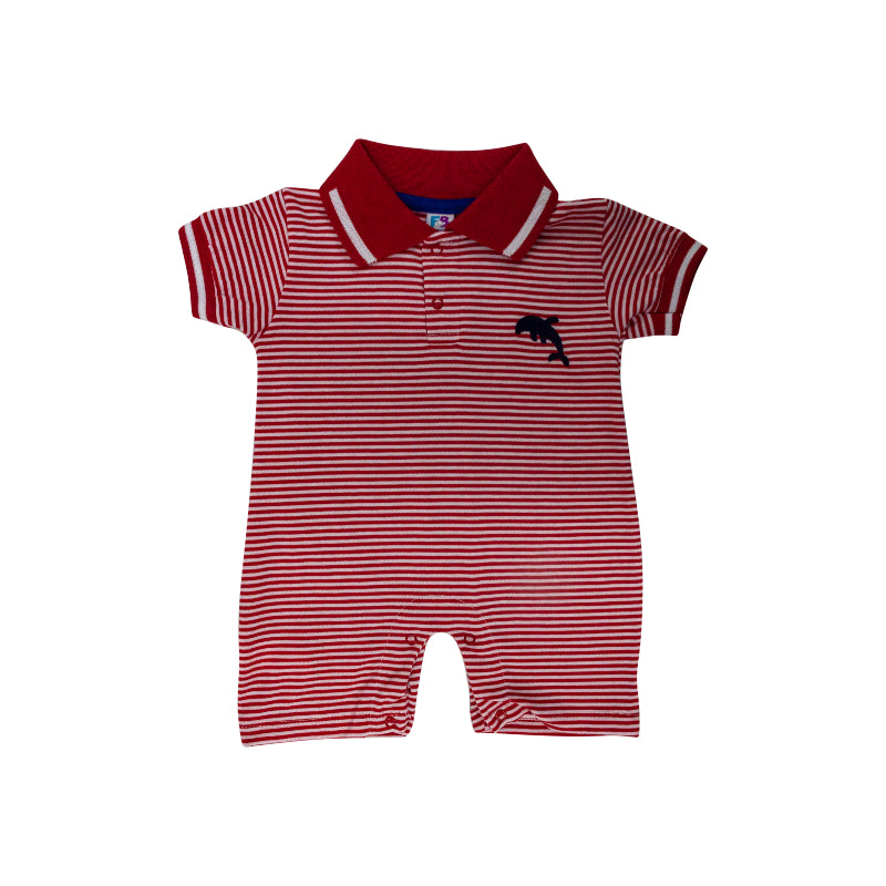 Body tipo polo con mangas y broches en la entrepierna, lindo estampado a rayas y botones en el cuello que facilitaran colocarlo a tu bebé. Elaborado en algodón.