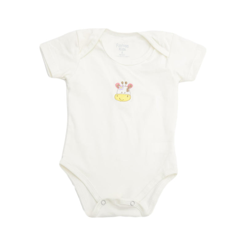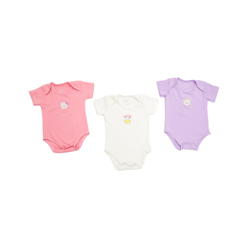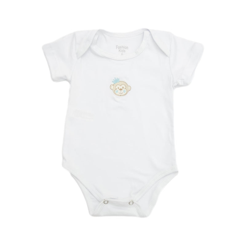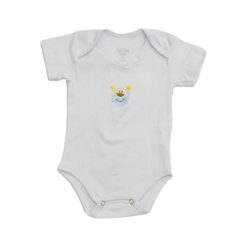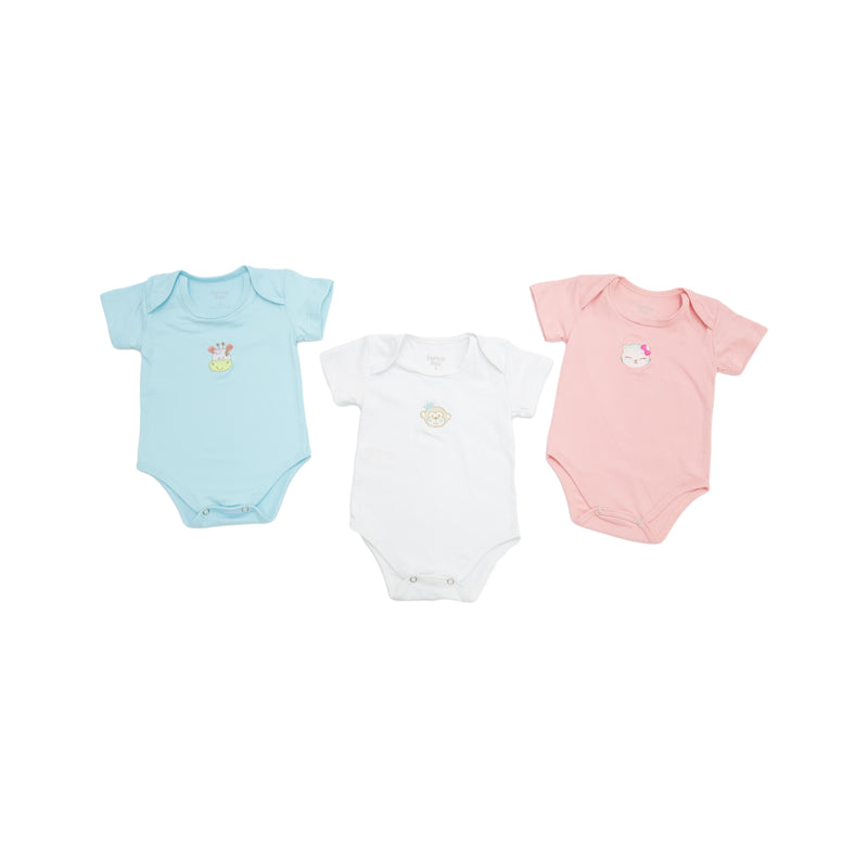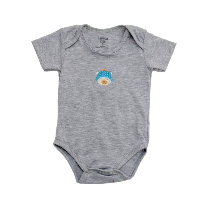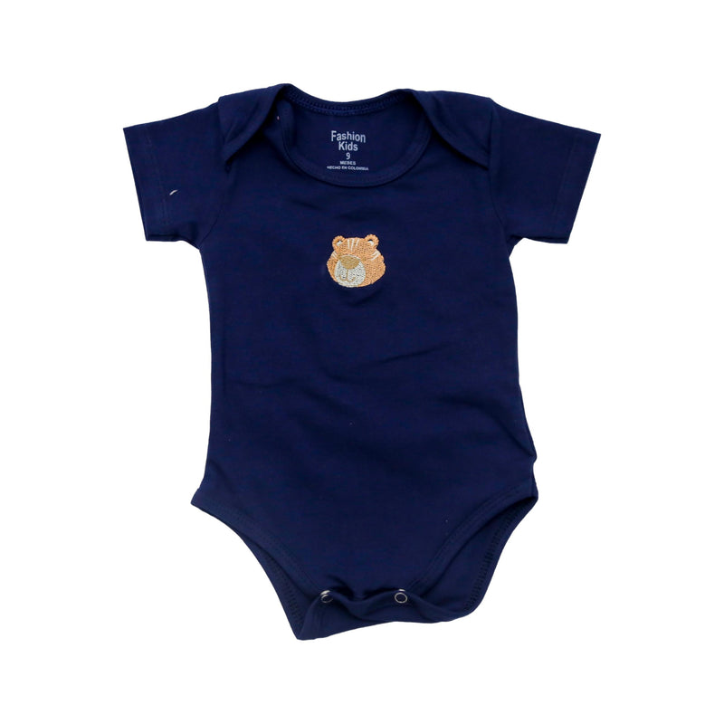 Body con cuello redondo que le darán comodidad a tu bebé, manga corta para mayor frescura, lindo bordado de animales. Prácticos broches en la entrepierna para facilitar la hora de colocarlo o del cambio del pañal.