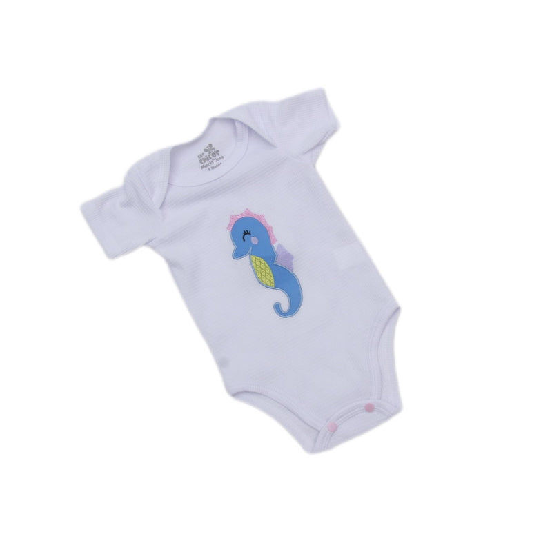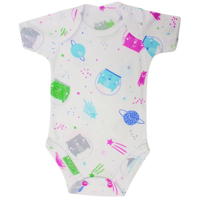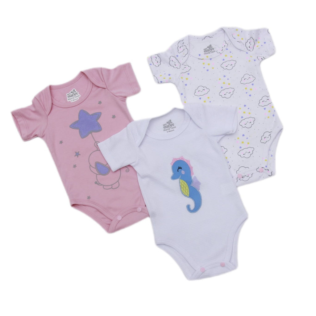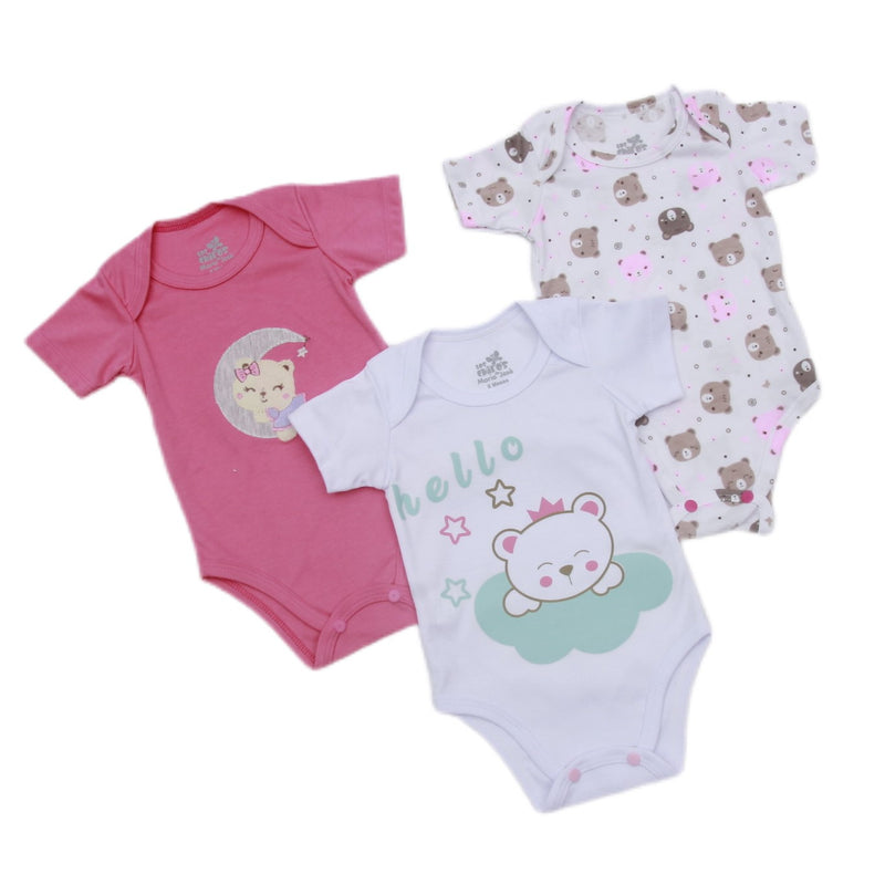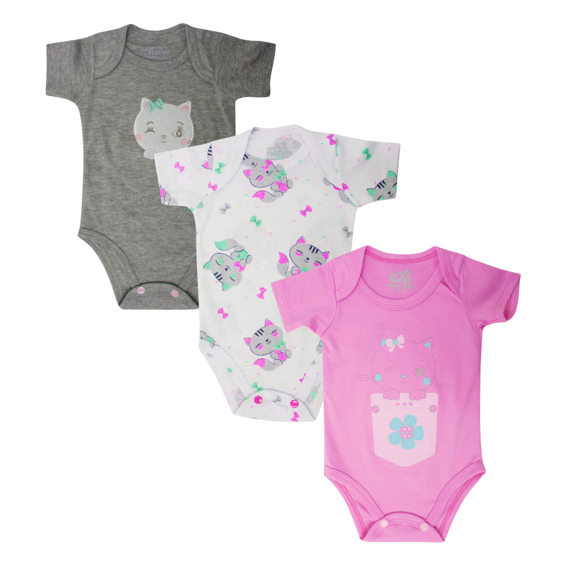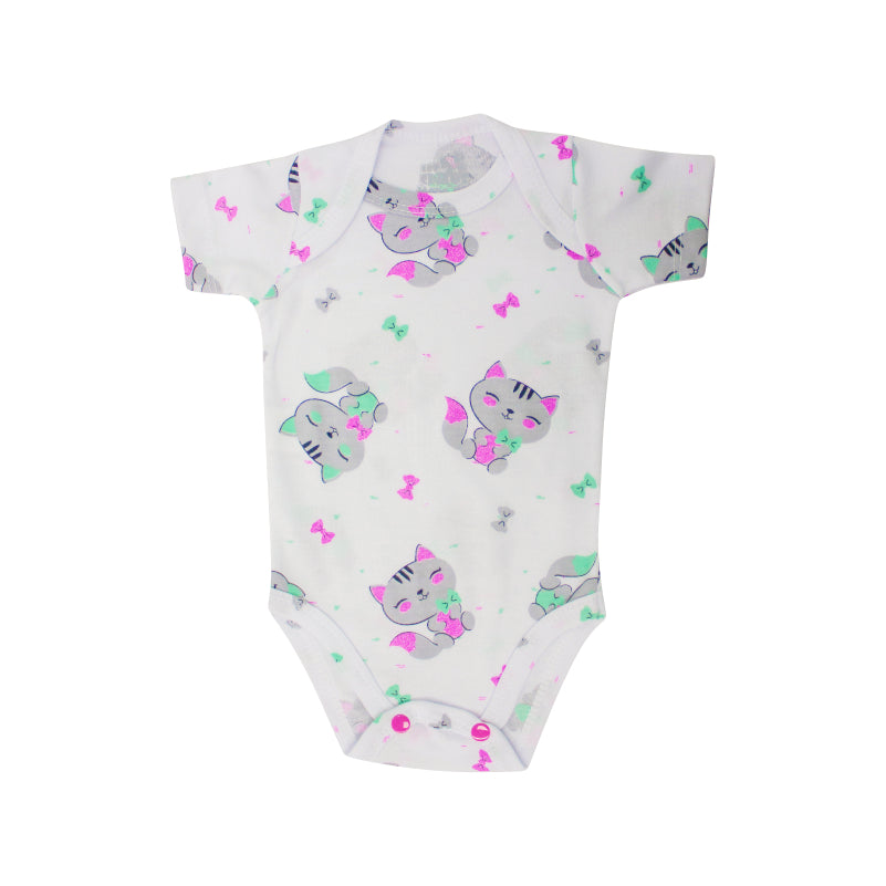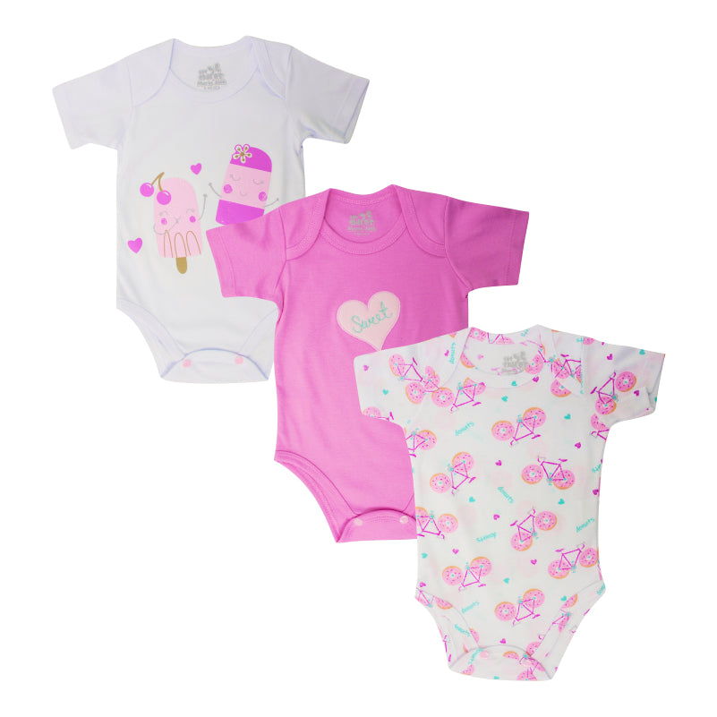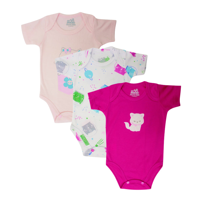 Body con cuello redondo que le darán comodidad a tu bebé, manga corta para mayor frescura, lindos bordados y estampados. Prácticos broches en la entrepierna para facilitar la hora de colocarlo o del cambio del pañal.