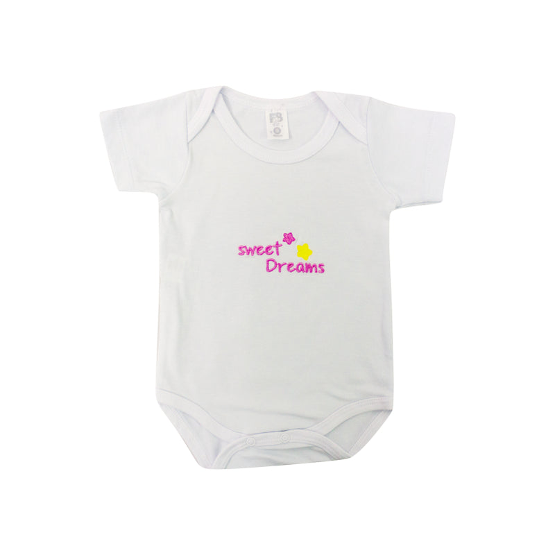 Body con cuello redondo que le darán comodidad a tu bebé, manga sisa para mayor frescura, lindo bordado de animales. Prácticos broches en la entrepierna para facilitar la hora de colocarlo o del cambio del pañal