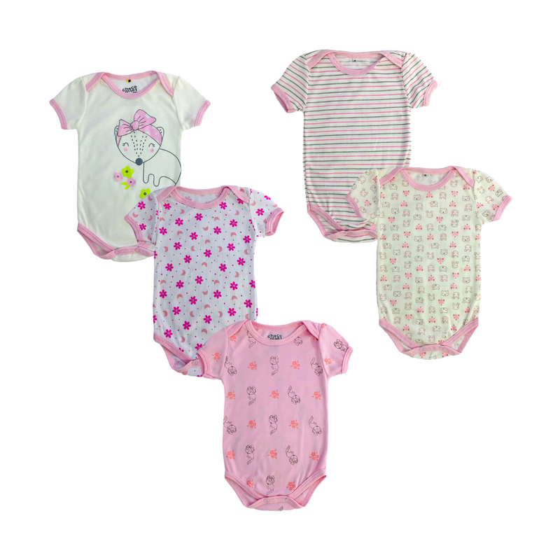 Set de bodies cuello redondo, manga corta con hermosos diseños. ¡Tela fresca y suavecita para la comodidad de tu bebé!