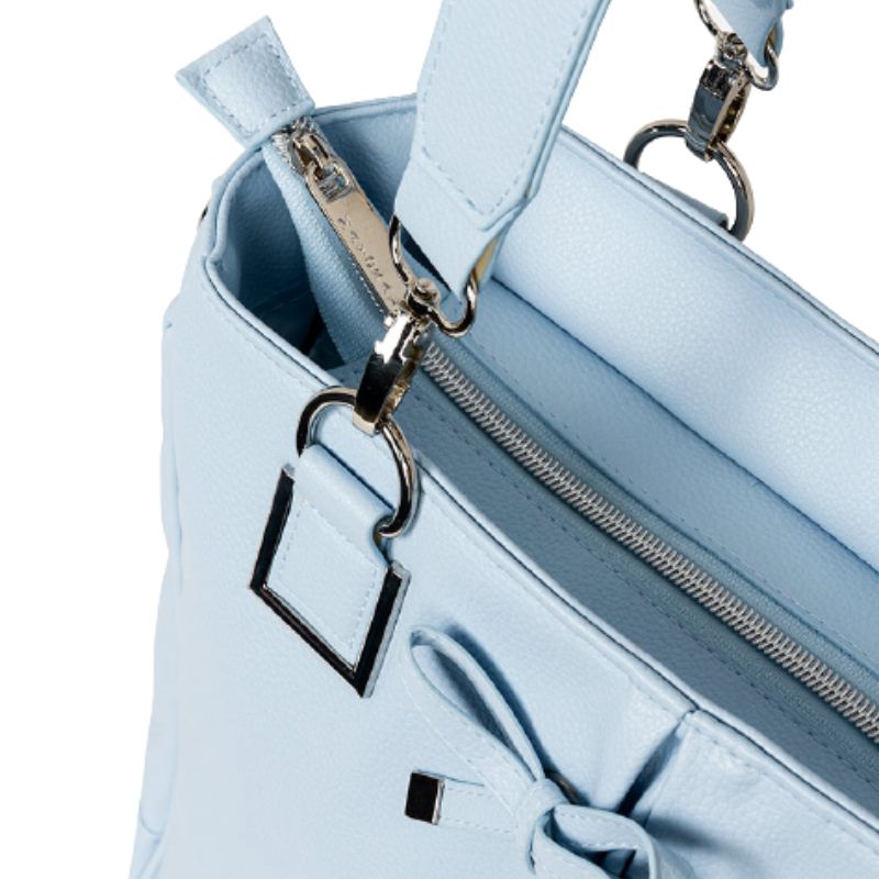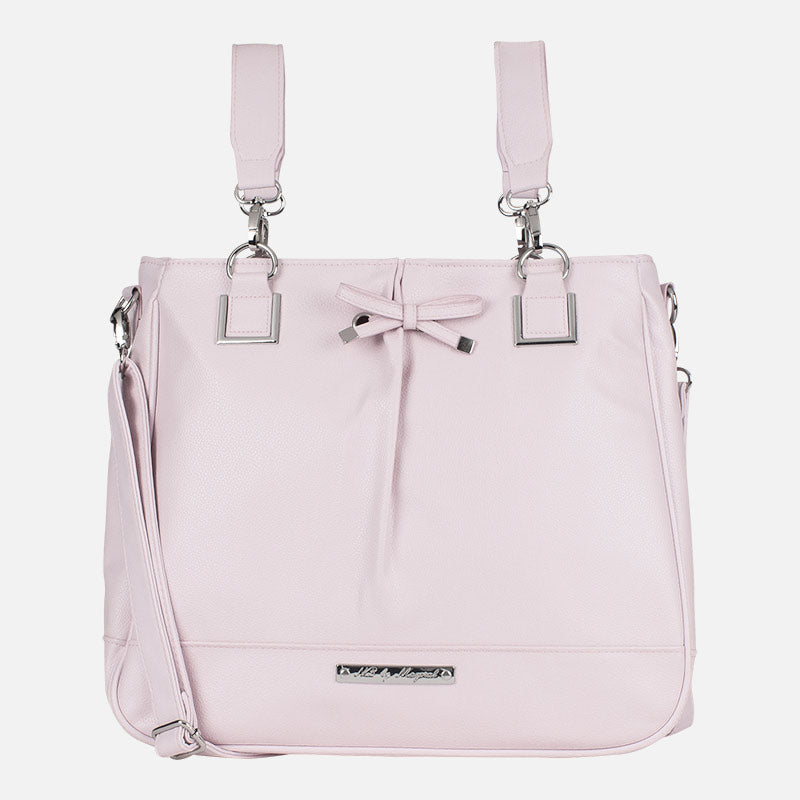 Bolso de tipo panera para carrito de bebé, perfecto para llevar con estilo todo lo necesario durante un paseo con tu pequeño/a. Incorpora asas de colgado desmontables, pudiendo engancharlo fácilmente a la sillita de tu bebé.