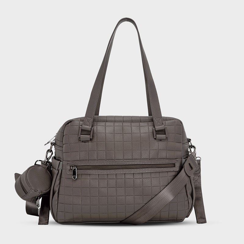 Bolso para bebé pensado para guardar sus accesorios indispensables. Un complemento práctico. Bolso de maternidad con portachupete a juego. Un set muy completo pensado para llevar todo lo que necesites para el cuidado de tu bebé. Cuenta con una asa larga al hombro desmontable, para usar como bandolera y ofrecer una mayor versatilidad.