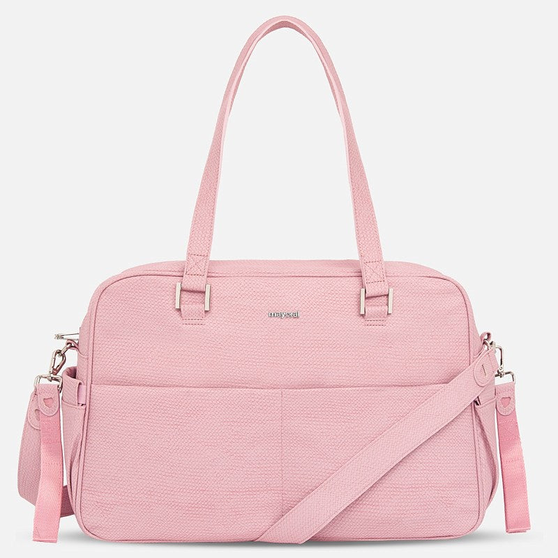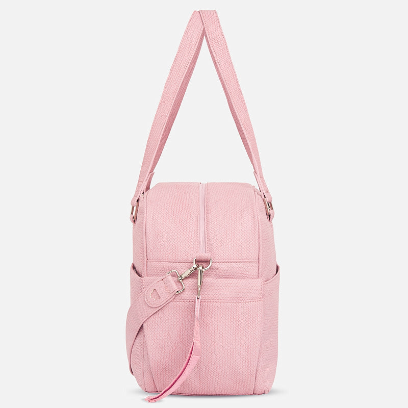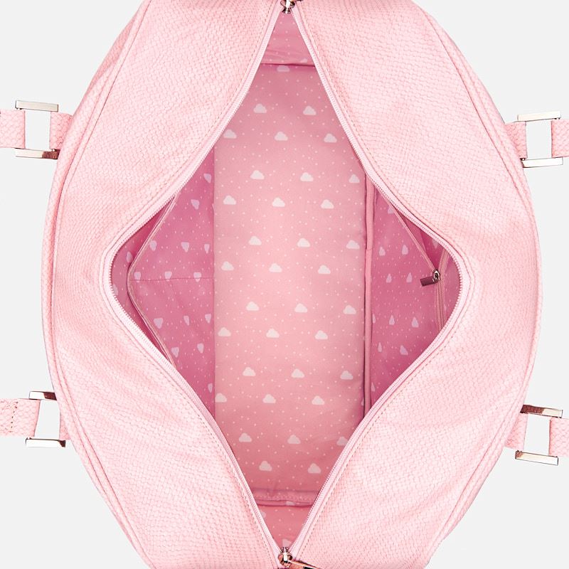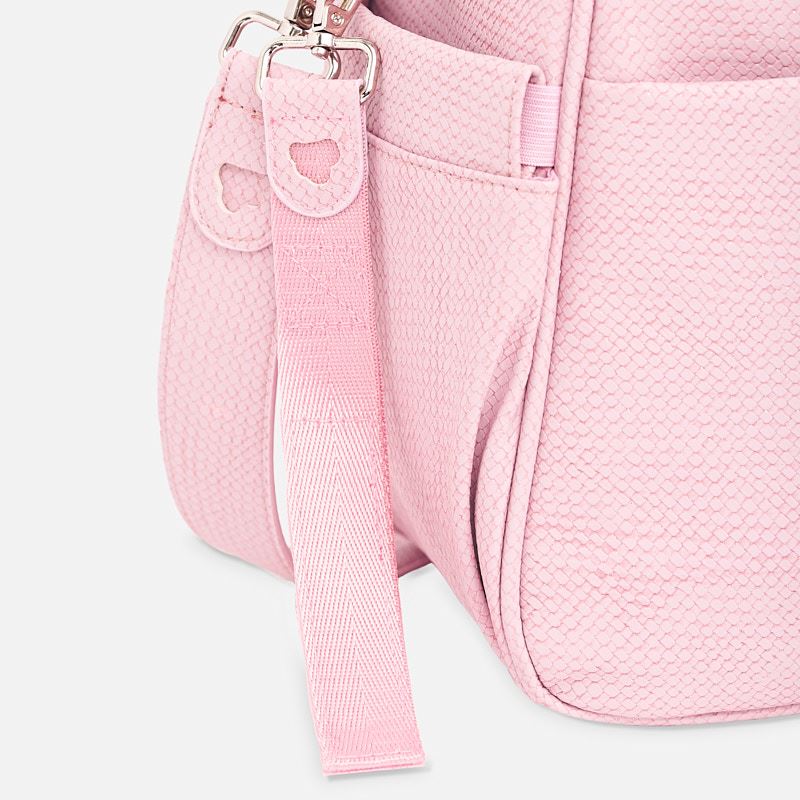 Bolso para bebé pensado para guardar sus accesorios indispensables. Un complemento práctico y divertido para completar cualquier look. Cierre con cremallera. Moderno exterior de polipiel. Cuenta con asas de colgado para la sillita y otra cinta larga al hombro para usar como bandolera, ambas desmontables.