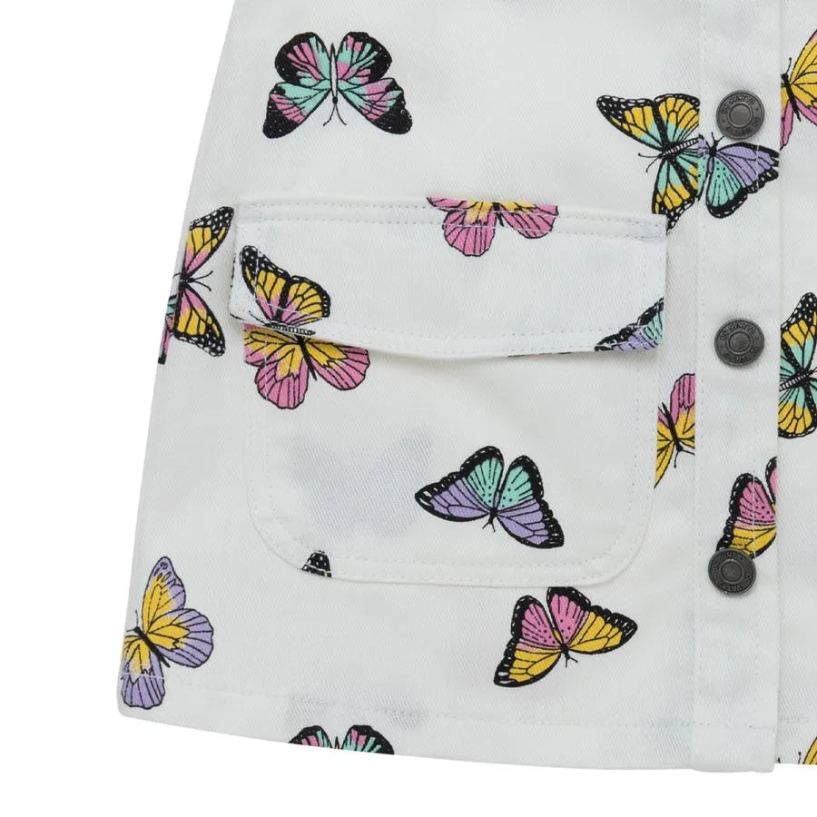 - Jardinera full estampado de mariposas que cuenta con cierre de botones a lo largo de la prenda, que facilitan su postura.