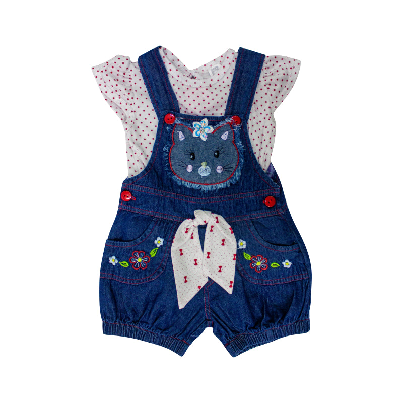 Conjunto braga bordado con botones en los tirantes para mayor comodidad al momento de cambiar a tu bebé. Camiseta manga corta y cuello redondo.