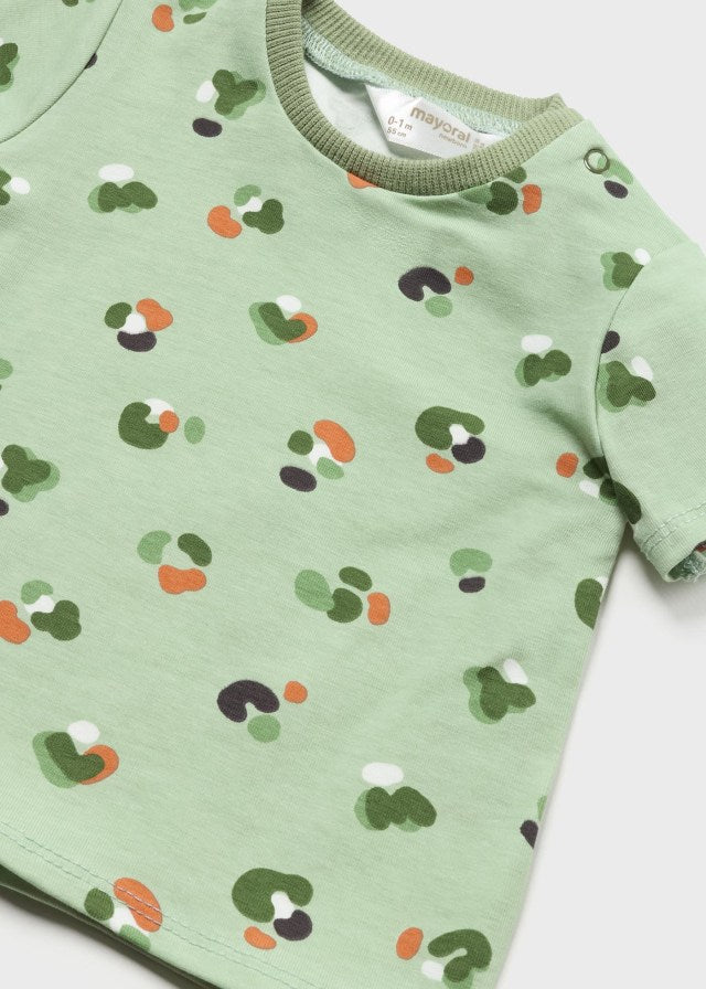 Prenda ECOFRIENDS, contiene algodón sostenible. Conjunto de camiseta combinado con peto a juego para recién nacido.