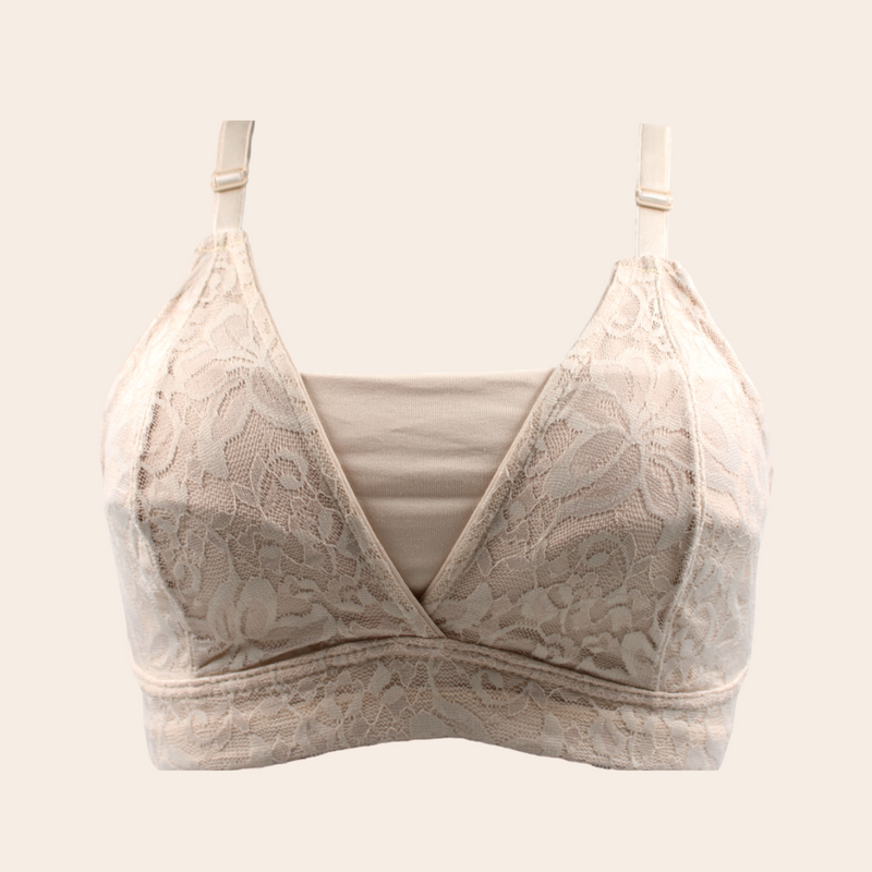 Brasier materno sin aro, sin realce, con escote en v y con refuerzo interno especial para madres que estén en proceso de lactancia. Este brasier tiene un refuerzo interno para facilitar la alimentación de tu bebé y para brindarte comodidad al mismo tiempo.