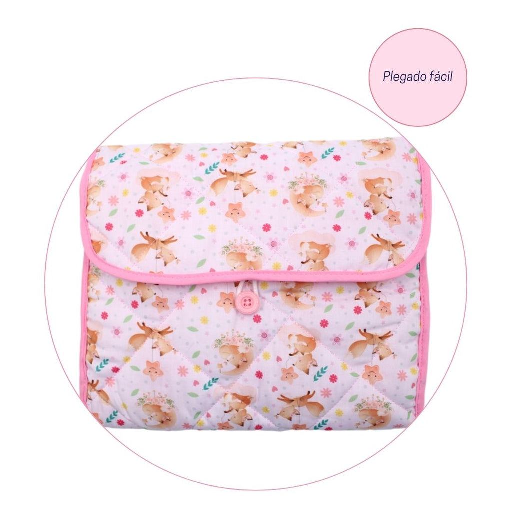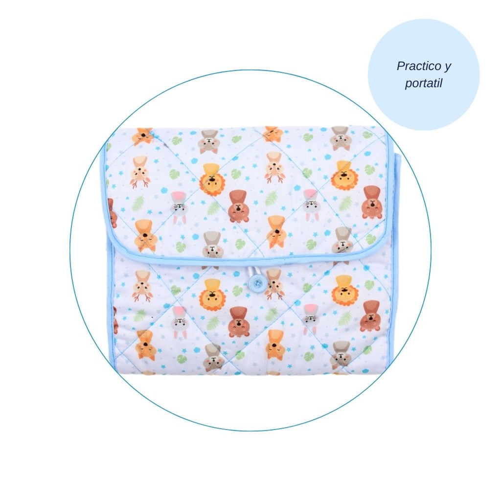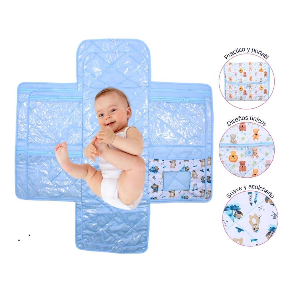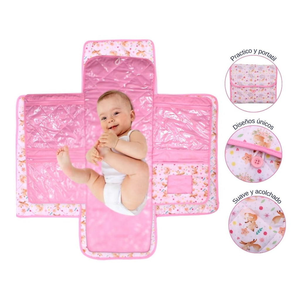 Cambiador impermeable para bebés portátil, acolchado con estampados. Brinda comodidad mientras cambias el pañal. Impermeable y fácil de limpiar. Elaborado en tela suave.