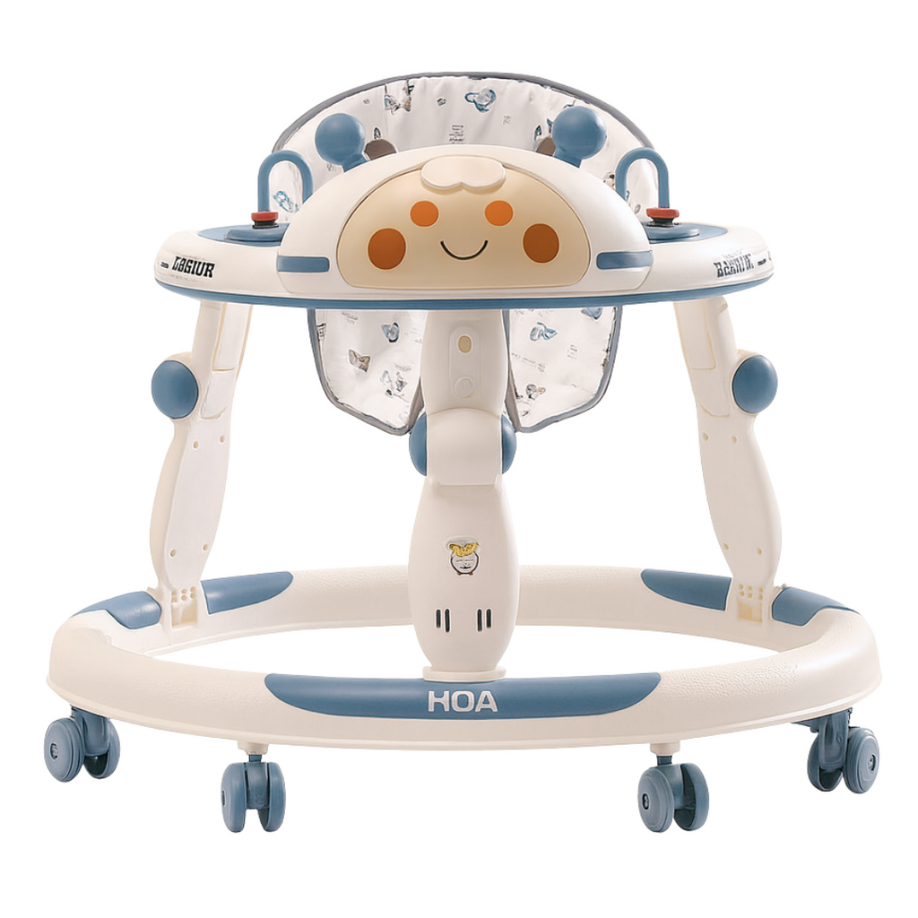 El asiento está elaborado en acolchado de espuma suave y algodón transpirable, brindando máximo confort. Su respaldo alto y la base extra ancha aportan mayor estabilidad y soporte, haciendo que cada momento en el andador sea seguro y placentero.