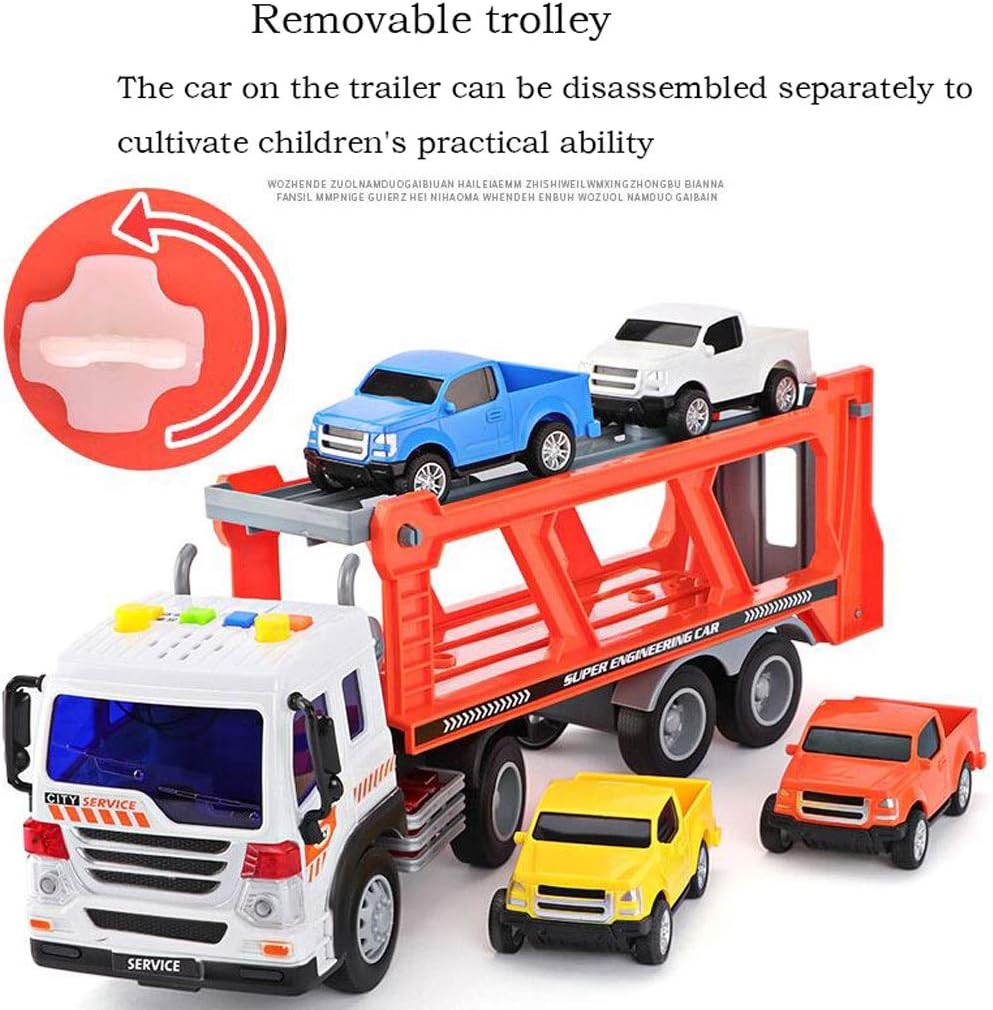 - Elaborado a partir de plástico de primera calidad, juguete remolque de transporte de coches es resistente para soportar un uso rudo y golpes en la pared. La pintura utilizada es no tóxico que se asegura de que no hay irritación o alergias de la piel