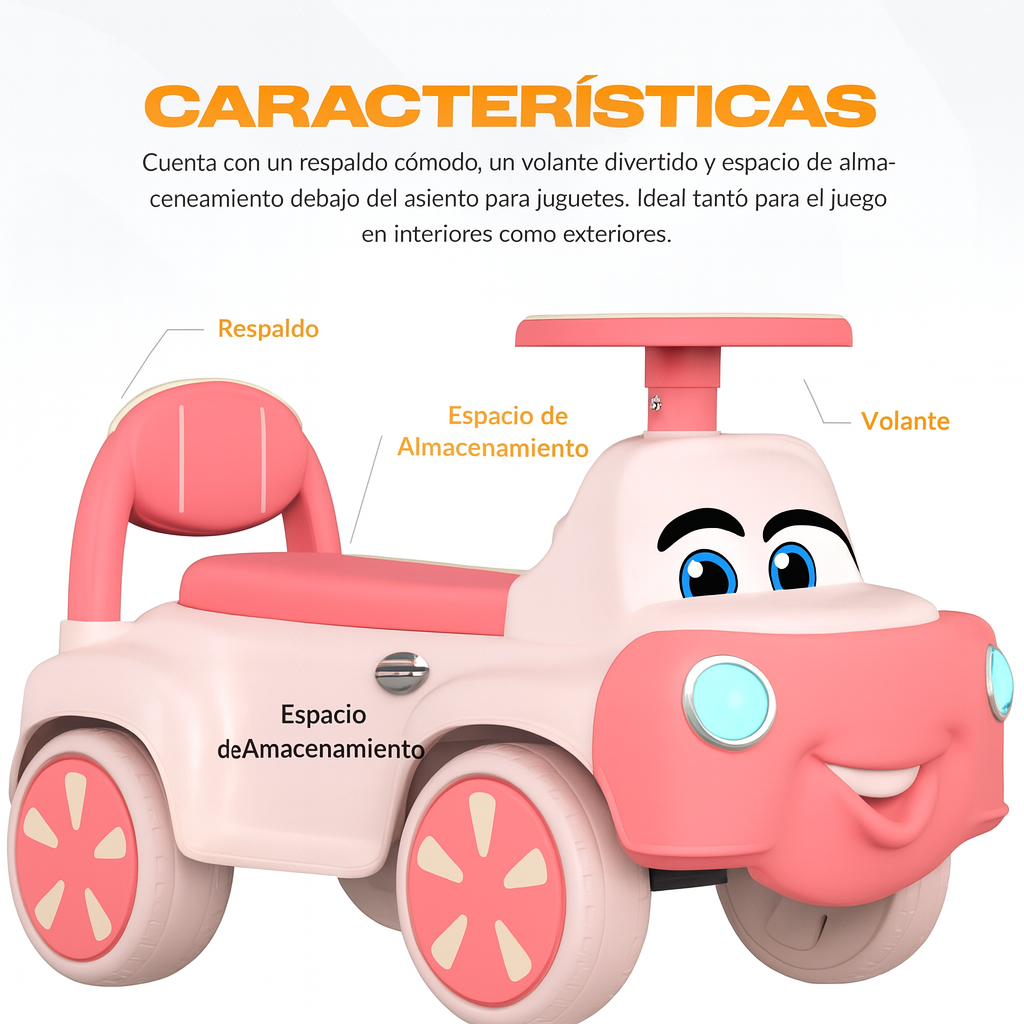 El auto montable infantil con diseño alegre y colorido es perfecto para las primeras aventuras de los más pequeños. Su carrocería con rostro sonriente, volante fácil de manejar y asiento cómodo con respaldo brinda seguridad y diversión. Además, incorpora luces LED intermitentes y música entretenida que hacen cada paseo aún más emocionante. Gracias a su compartimento de almacenamiento bajo el asiento, los niños podrán llevar sus juguetes favoritos a todos lados.