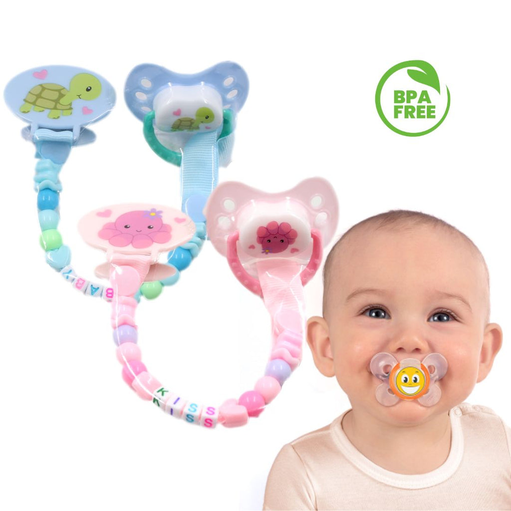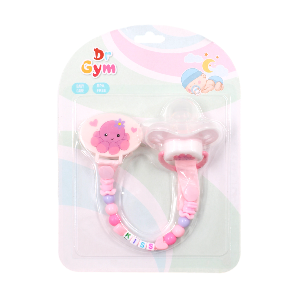 Hermoso chupo entretención 3 en 1, ya que tiene un chupo, una cadena y un clip para mantenerlo seguro. Es ideal para tu bebé, además de que su hermoso diseño lo hacen ver divertido para tu bebé. Además, la cadena funciona como un pacificador a la hora de la llegada de los dientes de tu bebé.