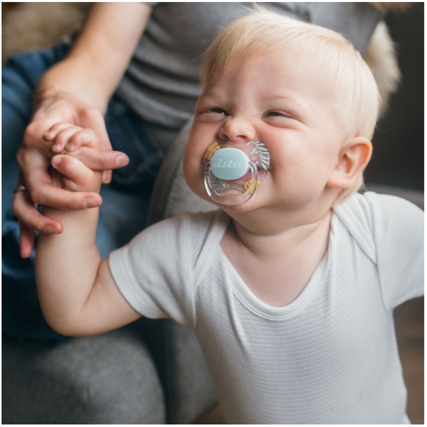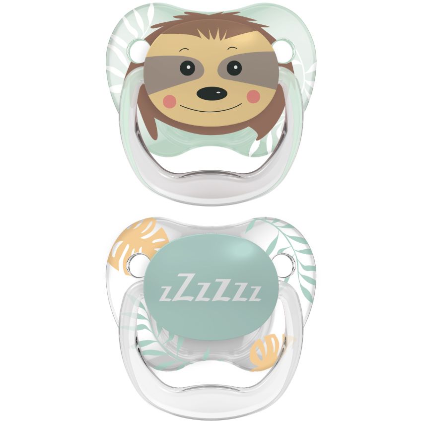 Chupo de entretención Prevent nivel 1 (0-6 meses) diseñado por un dentista pediátrico para prevenir los problemas dentales. Incluye un canal de aire sin succión que ayuda a reducir la succión y la presión en el paladar que pueden causar problemas dentales, como la mordida cruzada. La suave tetina se extiende cuando el bebé succiona, ofreciéndole consuelo con un nivel bajo de presión.