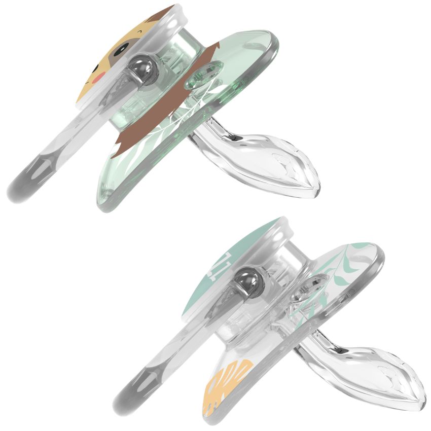 - El canal de aire sin succión incluye una abertura en la base del chupete que permite que la suave tetina se extienda fácilmente cuando el bebé succiona. Esto reduce la presión en las bocas pequeñas y ayuda a evitar problemas dentales futuros.