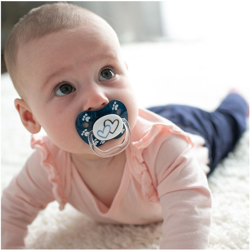 - La suave tetina del chupete se extiende cuando el bebé succiona, ofreciéndole consuelo con un nivel bajo de presión y base fina está diseñada para crear el menor impacto en la boca del bebé.