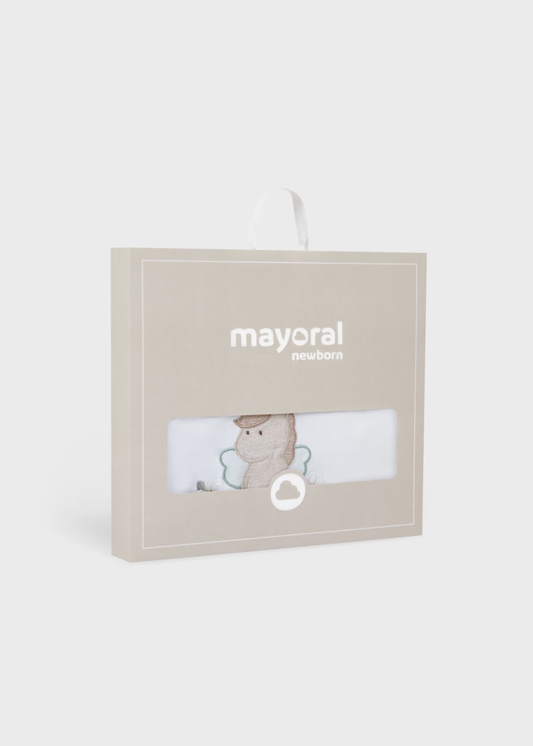 Arrullo de textura suave y agradable. Es una pieza ligera, de doblado fácil y con múltiples usos para los primeros meses de tu bebé. Elementos de adorno: bordados. Este artículo se presenta en una caja de la línea Newborn ideal para regalar en ocasiones especiales.
