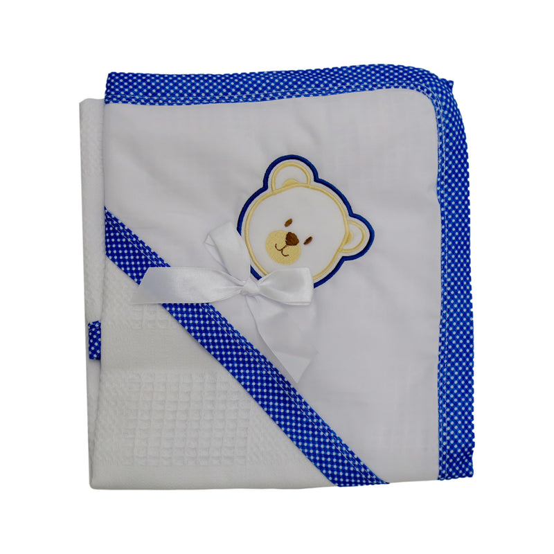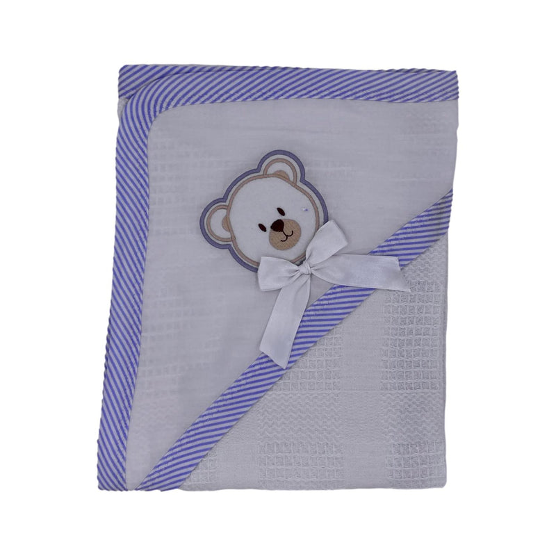 Cobija doble faz con bordado y capota, ideal para mantenerlos abrigados a la hora del descanso o protegerlos del sol.