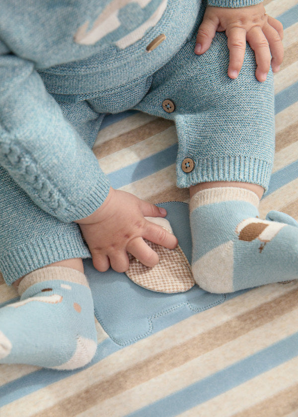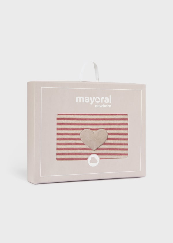 Disfruta de la suavidad y delicadeza de nuestro hermoso arrullo de algodón Mayoral. Con una paleta de colores exquisita, envolverá a tu bebé en confort y estilo. Una elección elegante y exclusiva para tu pequeño.