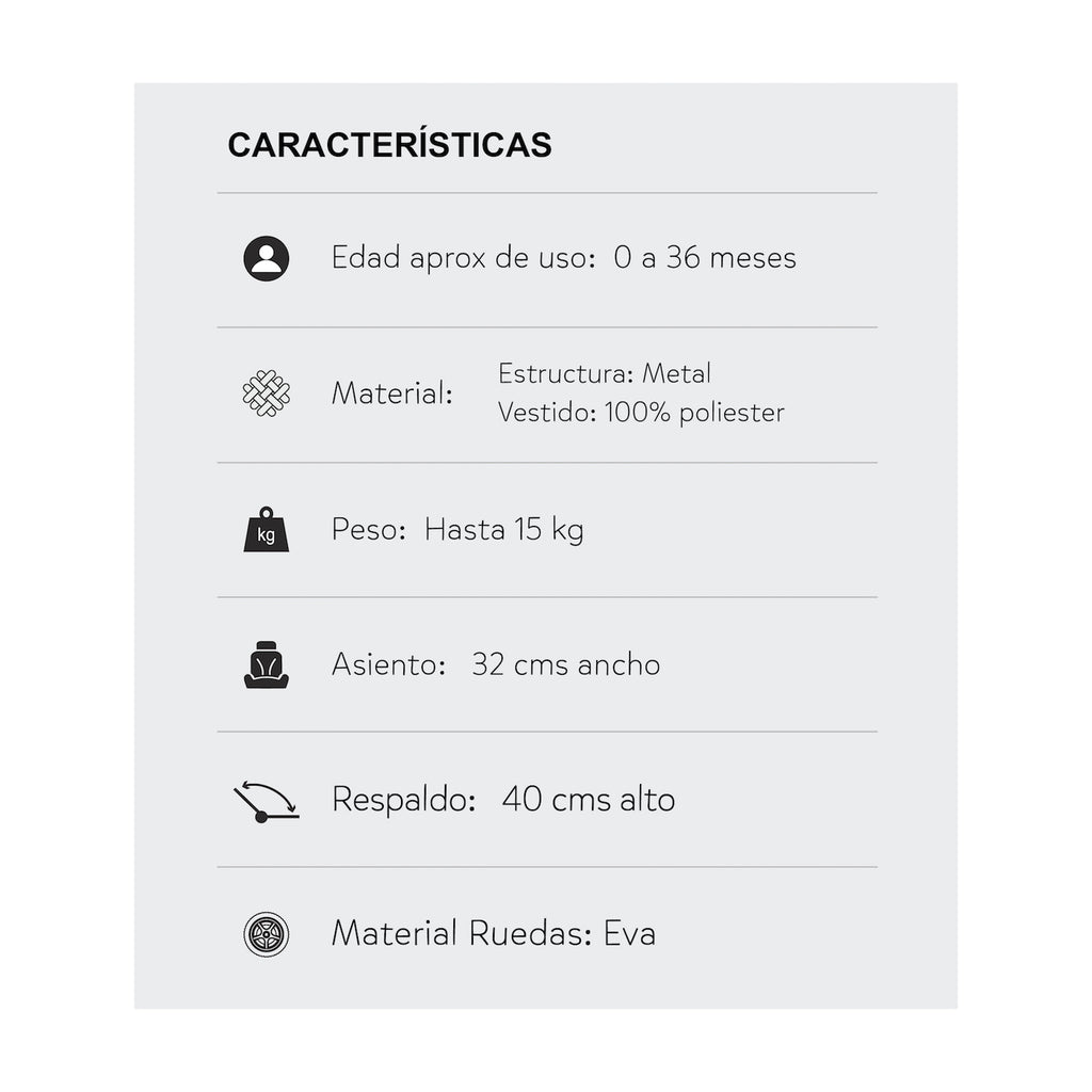Coche mecedora de Premium baby, un coche completo con manija reversible, sistema mecedora, 3 posiciones de reclinado, reposapiés con posiciones ajustables, bandeja con portavaso. Edad recomendada: Desde los 0 meses hasta los 36 meses.
