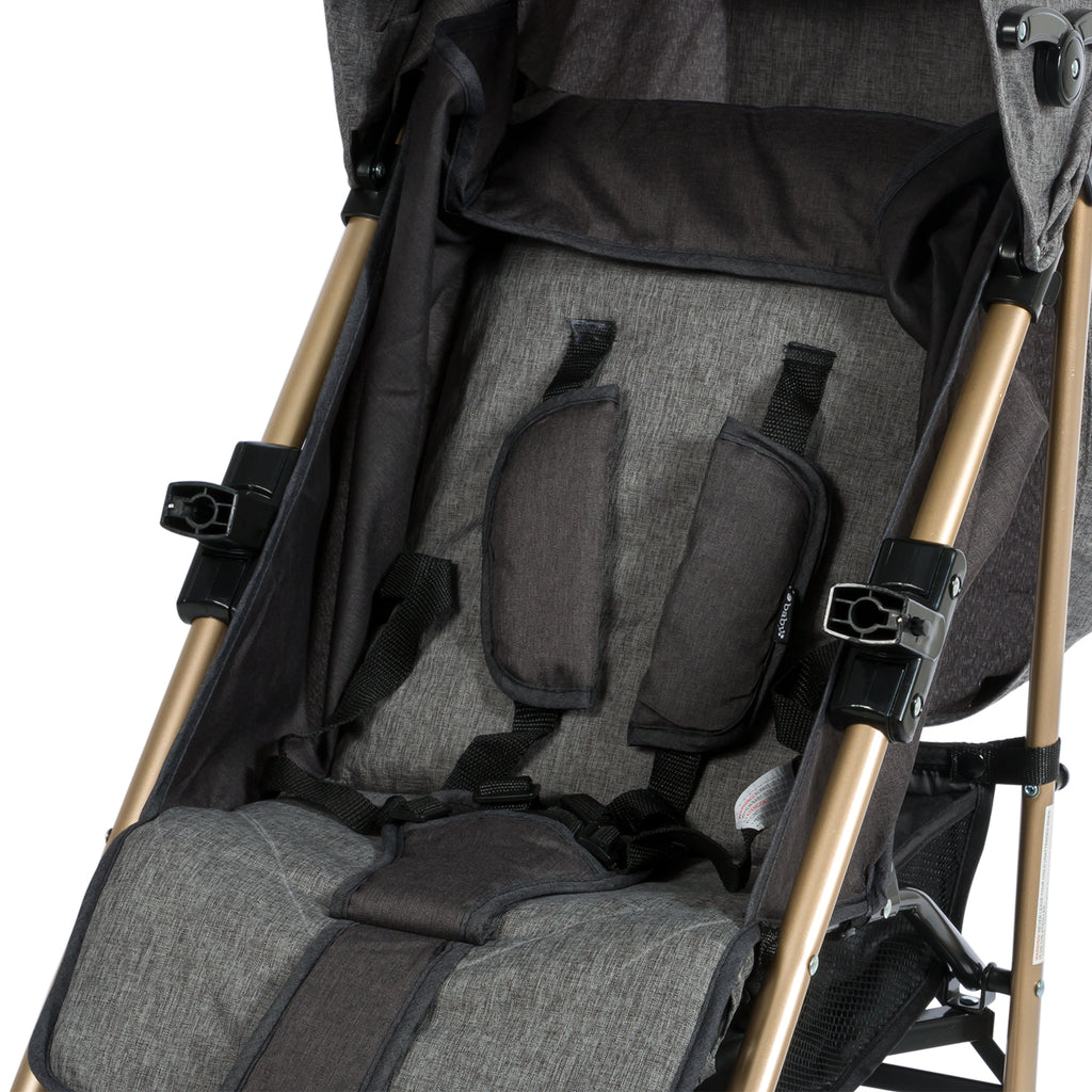 Ofrece máxima comodidad con su respaldar regulable, función de verano – cuna, y reposa pies ajustable. La seguridad es primordial con su arnés de 5 puntos y barrera frontal desmontable. Además, sus llantas delanteras giratorias 360° y llantas traseras con frenos independientes brindan estabilidad y control en cada movimiento.