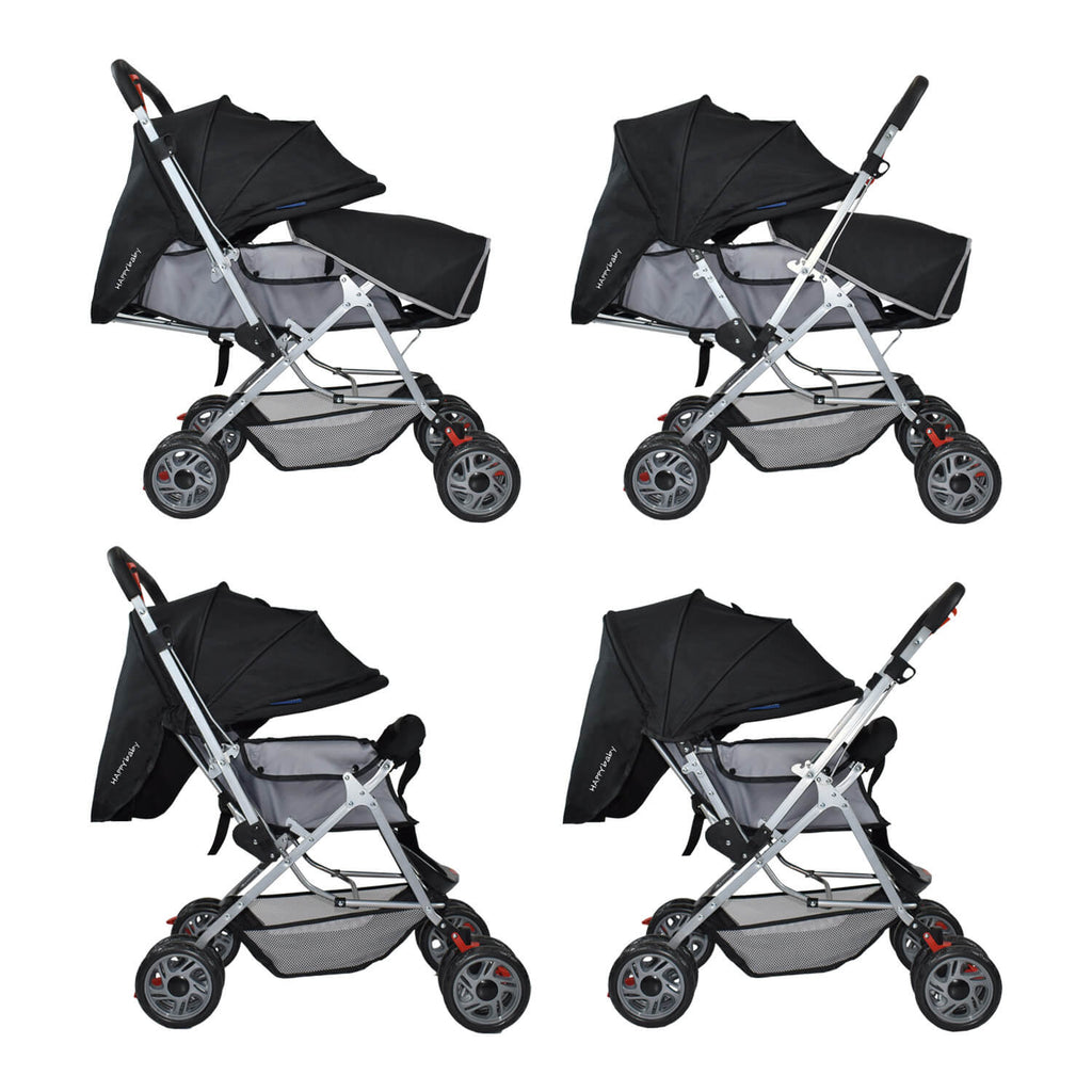 COCHE CUNA REVERSIBLE PASEADOR + BOLSO DALLAS NEGRO HAPPY BABY