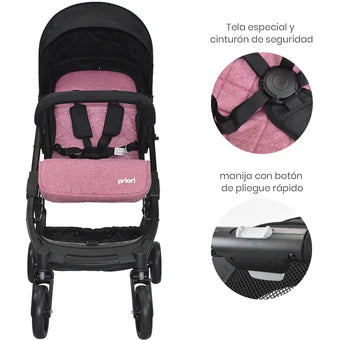 Coche Argus de Priori es uno de los coches más completos y ligeros, plegado compacto tipo maleta, tela elaborada en poliéster, cinturón de seguridad de 5 puntos. Múltiples funciones que se pueden adaptar a todas las etapas de tu bebé desde recién nacido hasta los 3 años.