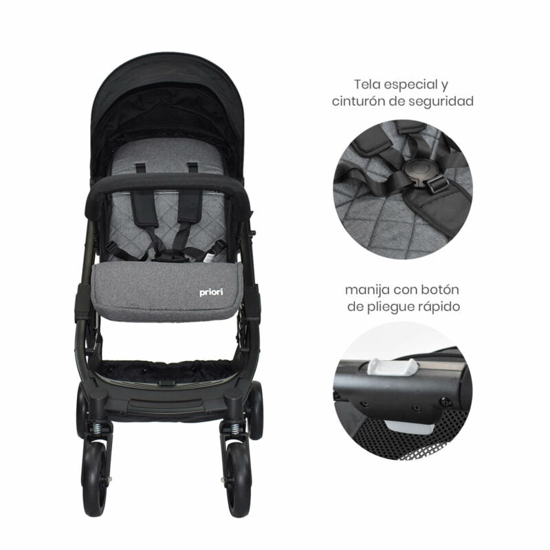 Coche de Bebe Priori Argus es uno de los coches más completos y ligeros, con plegado compacto tipo maleta, tela elaborada en poliéster, cinturón de seguridad de 5 puntos. Múltiples funciones que se pueden adaptar a todas las etapas de tu bebé desde recién nacido hasta los 3 años.