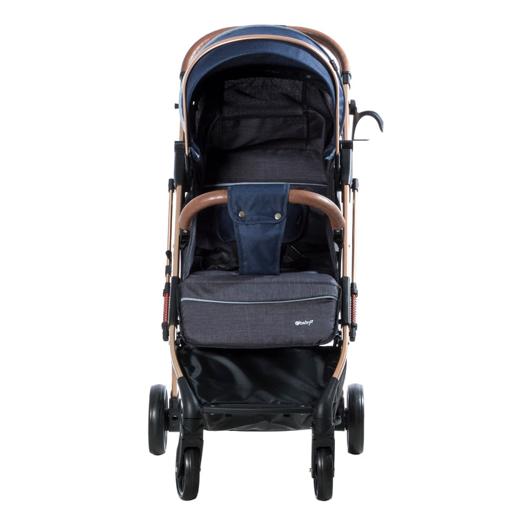 El coche maleta es ligero, resistente y muy manejable. Cuenta con manillar corrido, barra frontal de seguridad, reposapiés regulable, y capota de gran tamaño con bolsillo, visera y red.