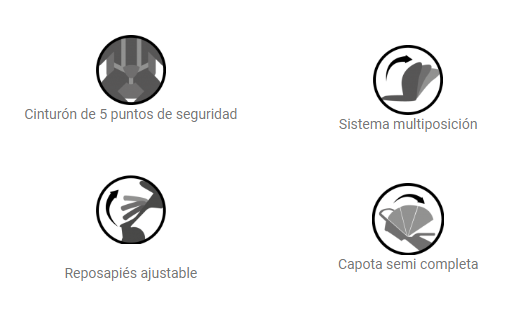 El coche maleta es ligero, resistente y muy manejable. Cuenta con manillar corrido, barra frontal de seguridad, reposapiés regulable, y capota de gran tamaño con bolsillo, visera y red.