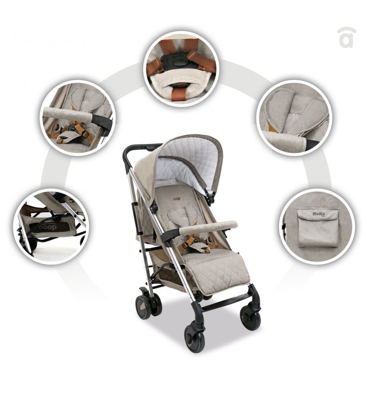 La Silla de Paseo MOMA+ Beige cuenta con un diseño elegante que te enamorará nada más verla. Su asiento, amplio y confortable, soporta hasta los 22 kg. Con una calidad probada y un plegado compacto, la Silla MOMA+ es el vehículo perfecto para tu bebé.